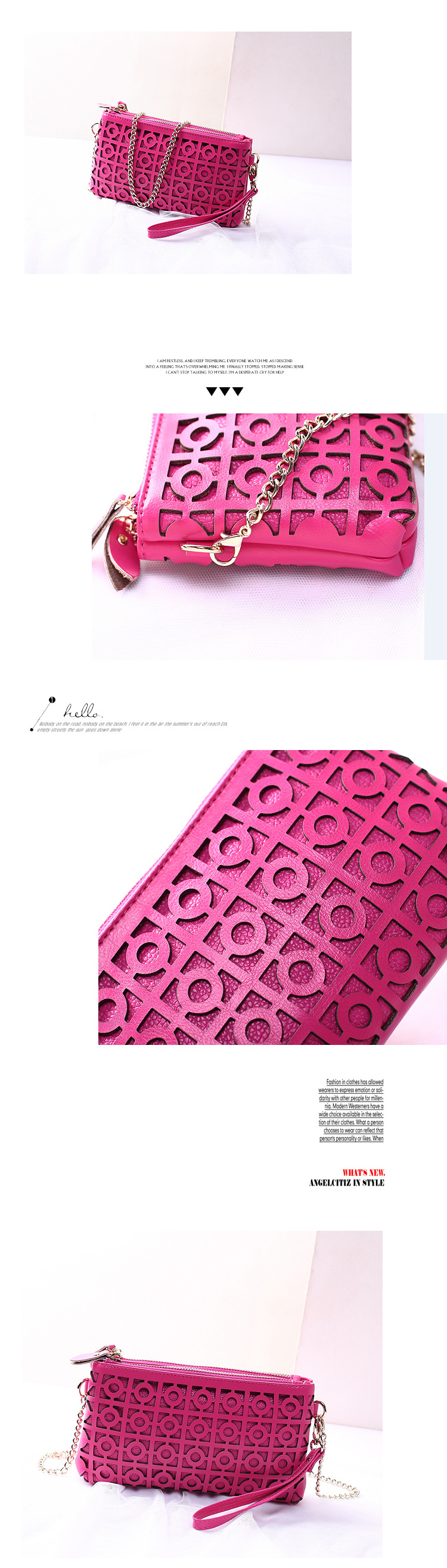 批發一路發提供客戶日本、大陸、香港、歐美2014新款明星同款時尚鏤空鏈條真皮女包手拿包女士單肩包斜跨小包批發、進口、代購的物流整合服務,針對機械、電子、半導體的零組件或機台設備等特殊性需客製化產品,我們也有各家工廠配合的専業工程師可回覆您的專業性問題。