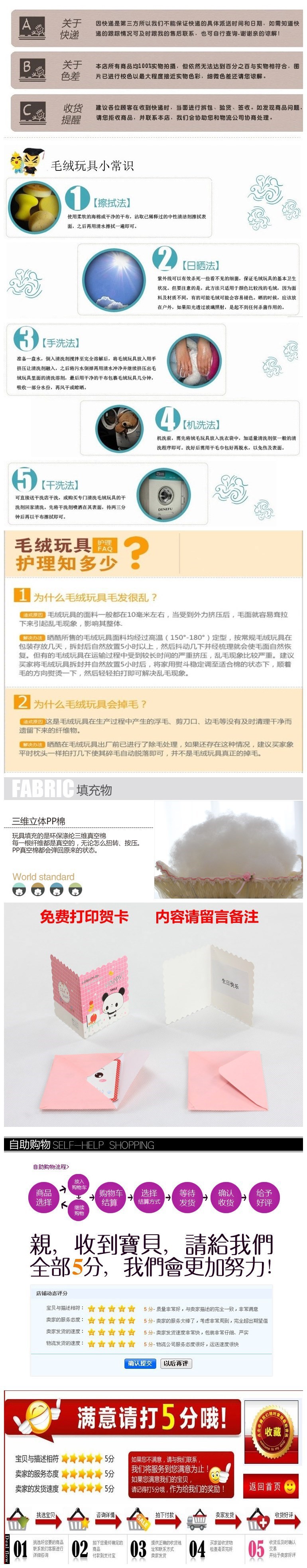 【玩具材質】采用:最高檔超柔短毛絨。填充物:一級PP棉。
