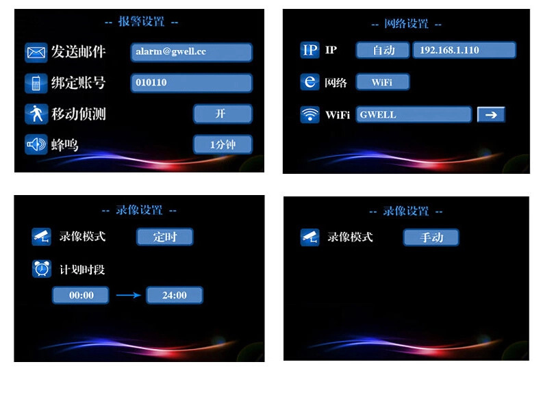 錄像管理錄像方式手動錄像、動態檢測錄像、定時錄像、報警錄像