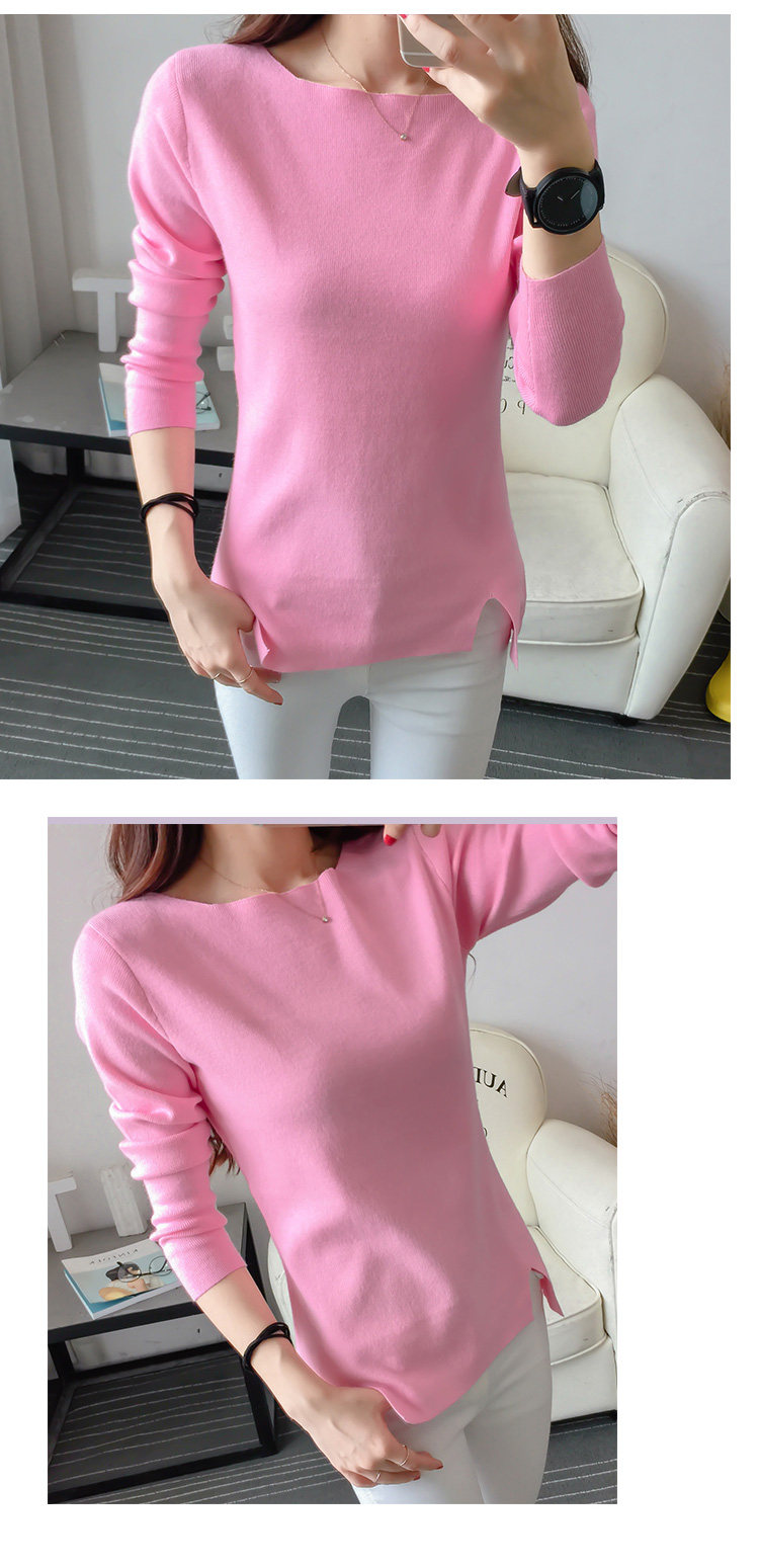 2015秋冬新款韓版長袖兔絨包芯紗毛衣針織衫學生套頭打底衫女