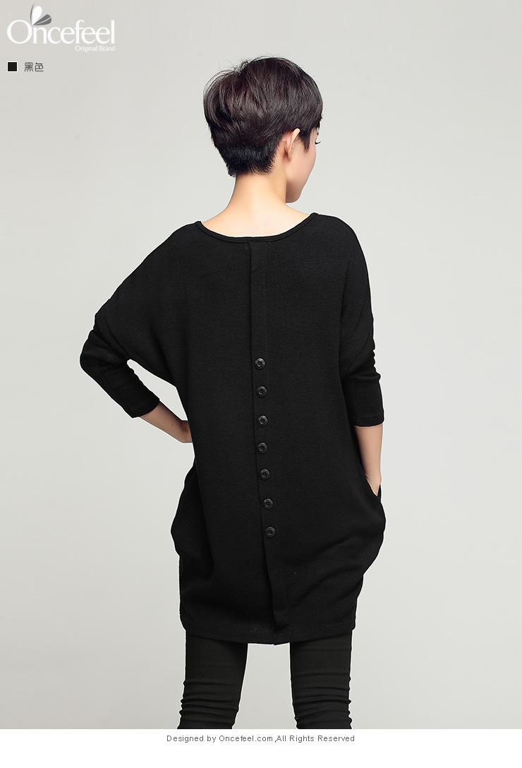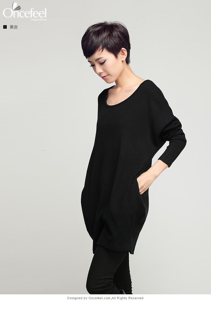 2015歐洲站大碼秋季高檔時尚女裝羊毛長袖中長款套頭針織衫#010