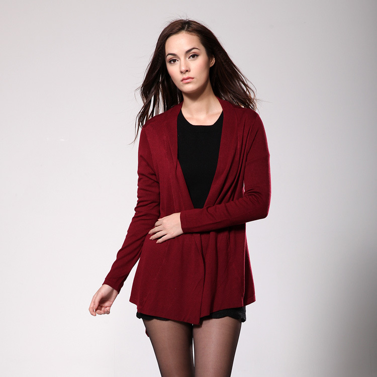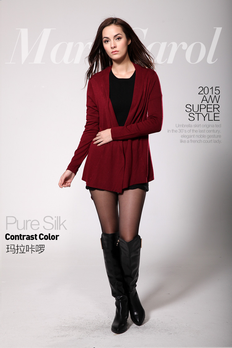 瑪拉咔囉2015秋裝新款歐美高端女裝長袖修身收腰褶皺針織衫女開衫