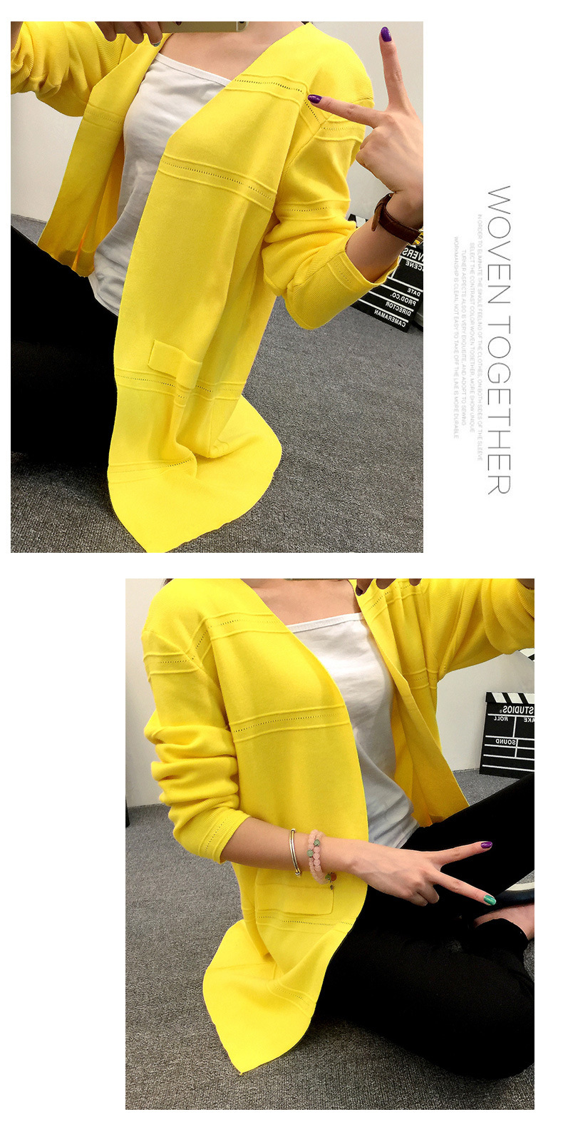 2015秋季新品女裝韓版中長款寬松顯瘦針織衫開衫潮