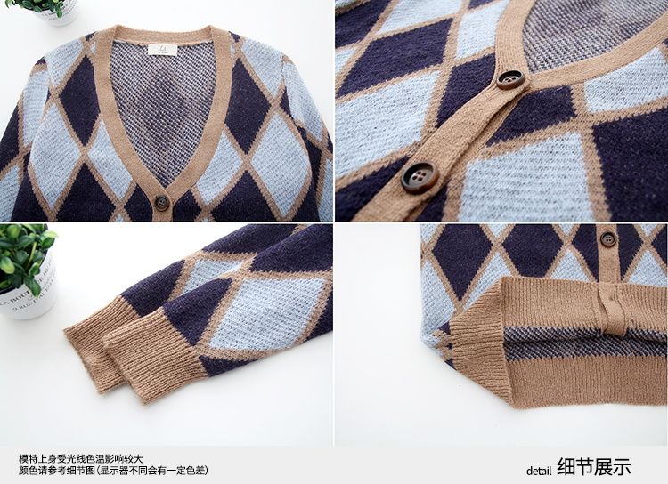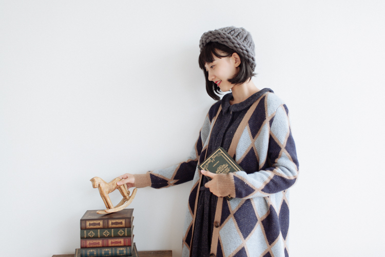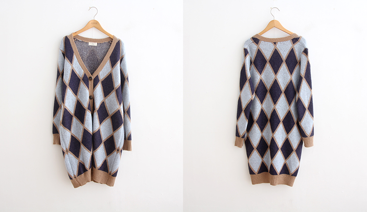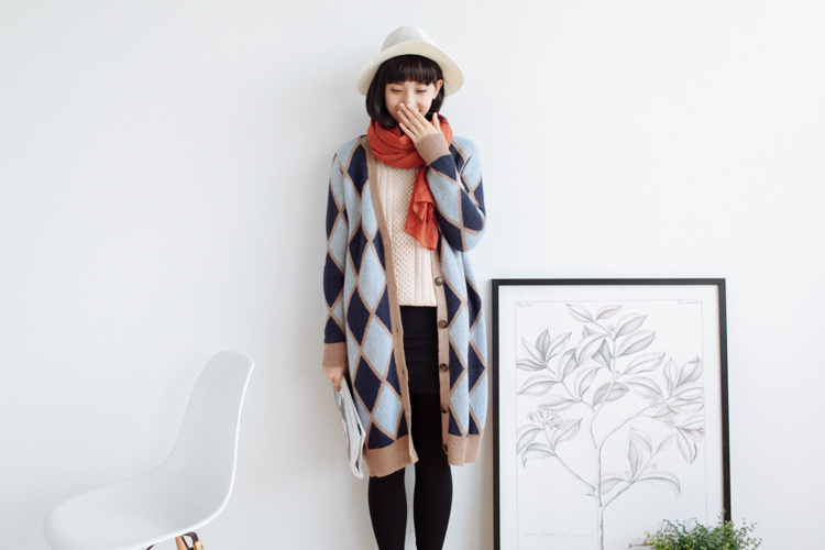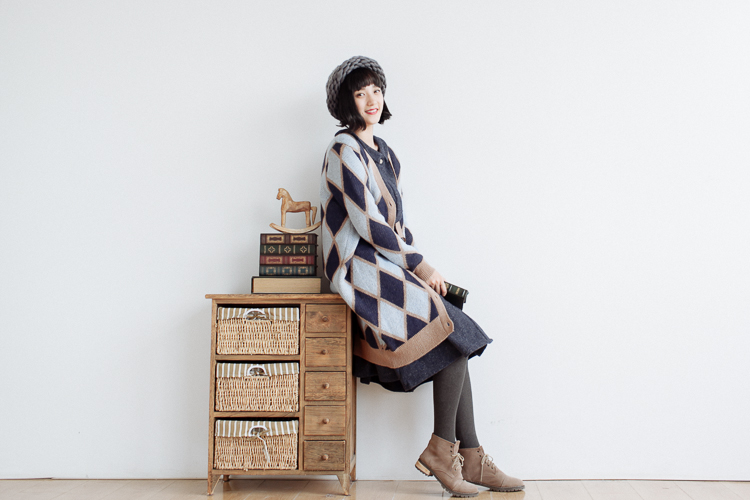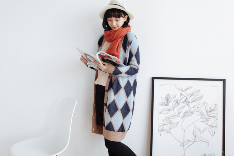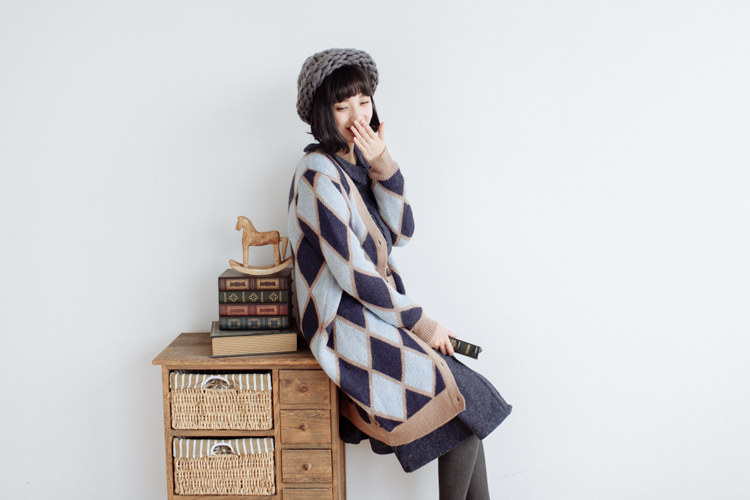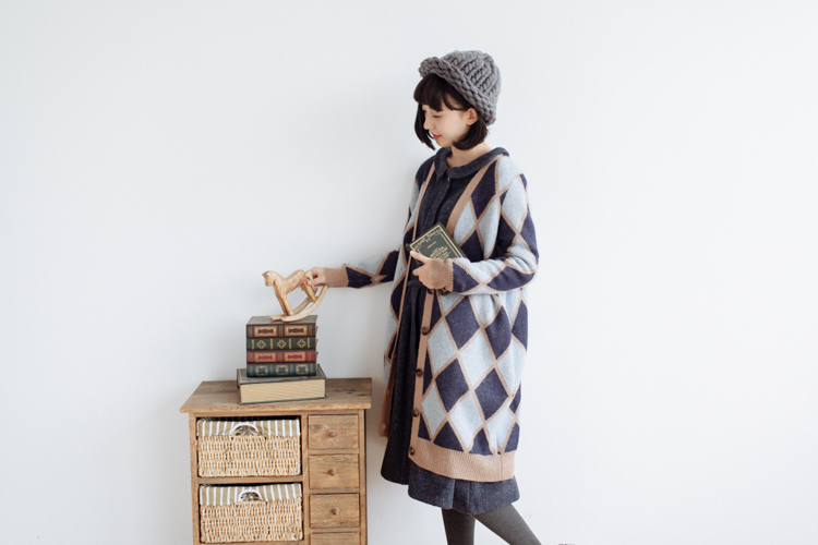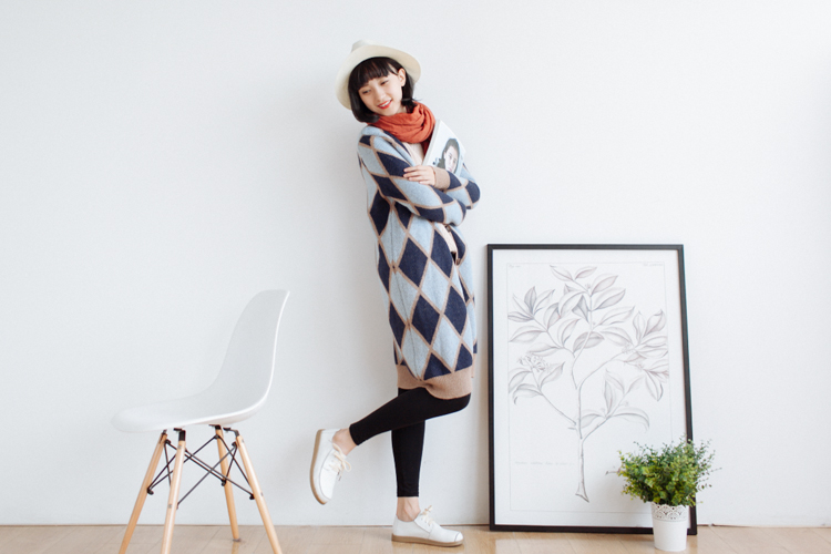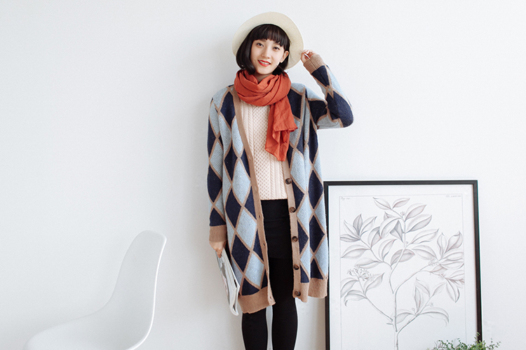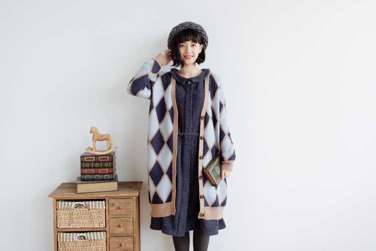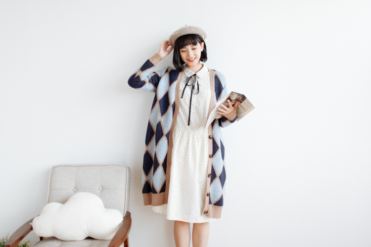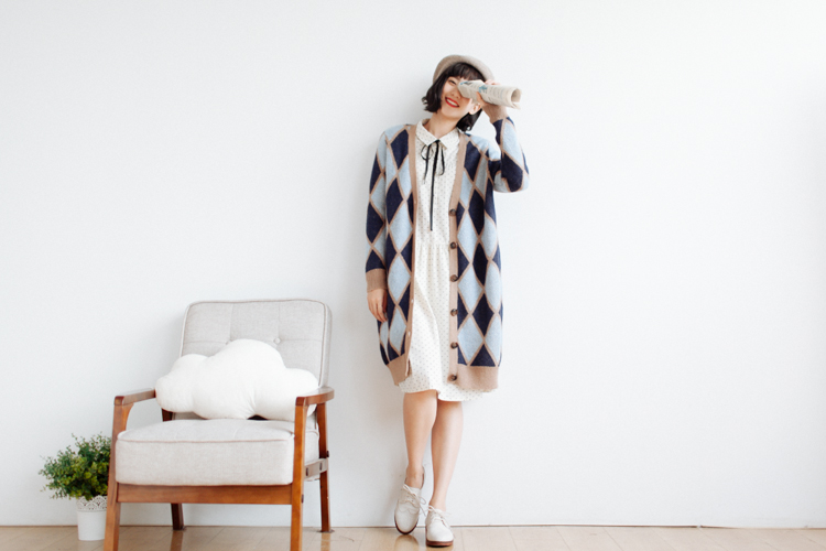 衣身上的菱形圖案 散發著濃鬱的復古氣息