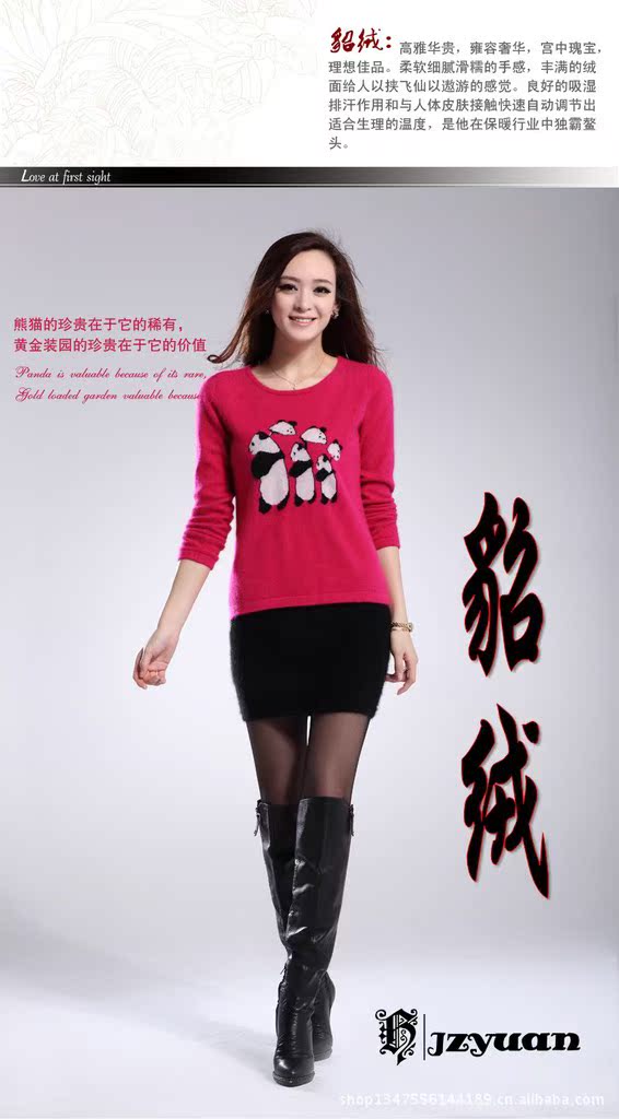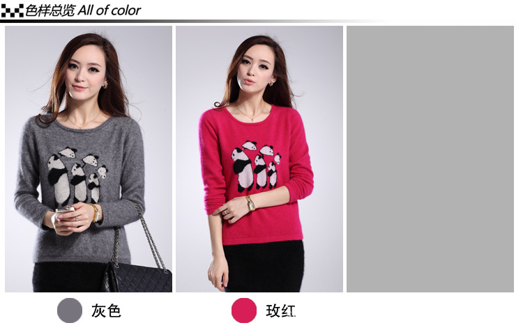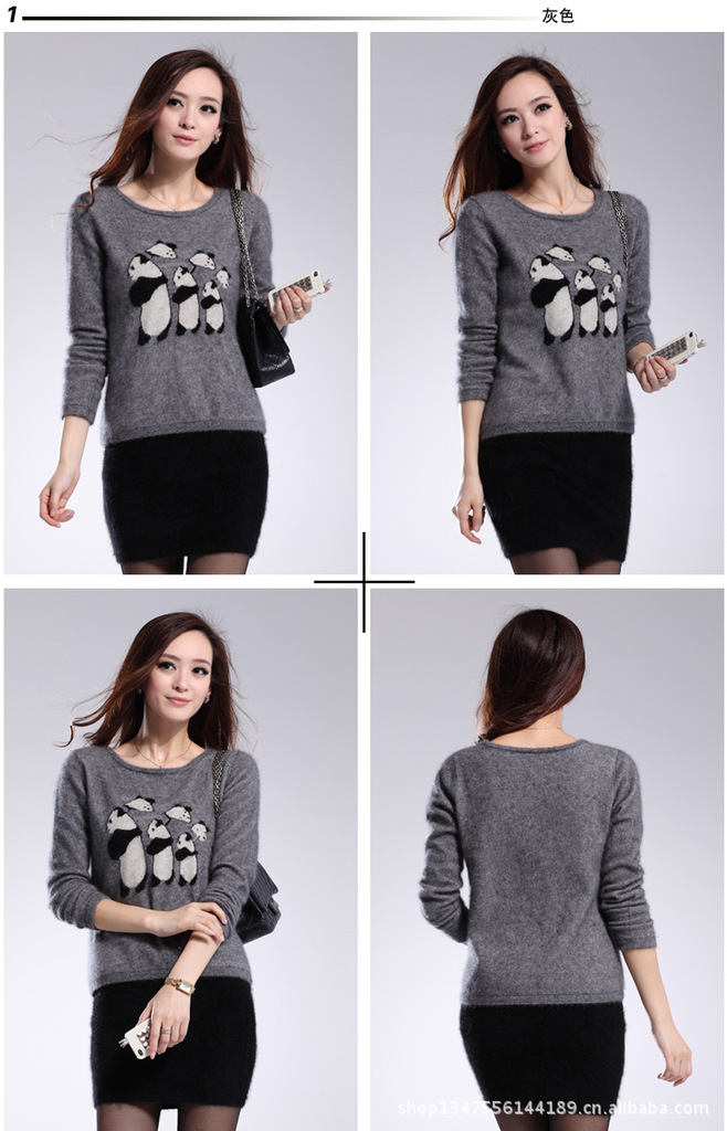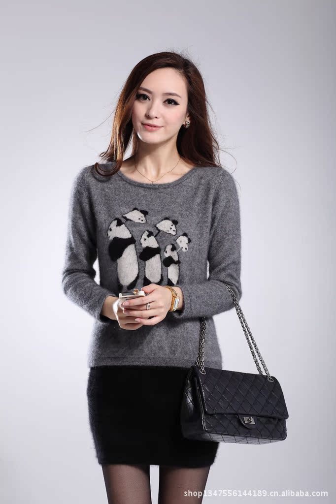 新款羊毛衫批發 韓版圓領貂絨衫打底衫 熊貓圓領女式毛衣套衫