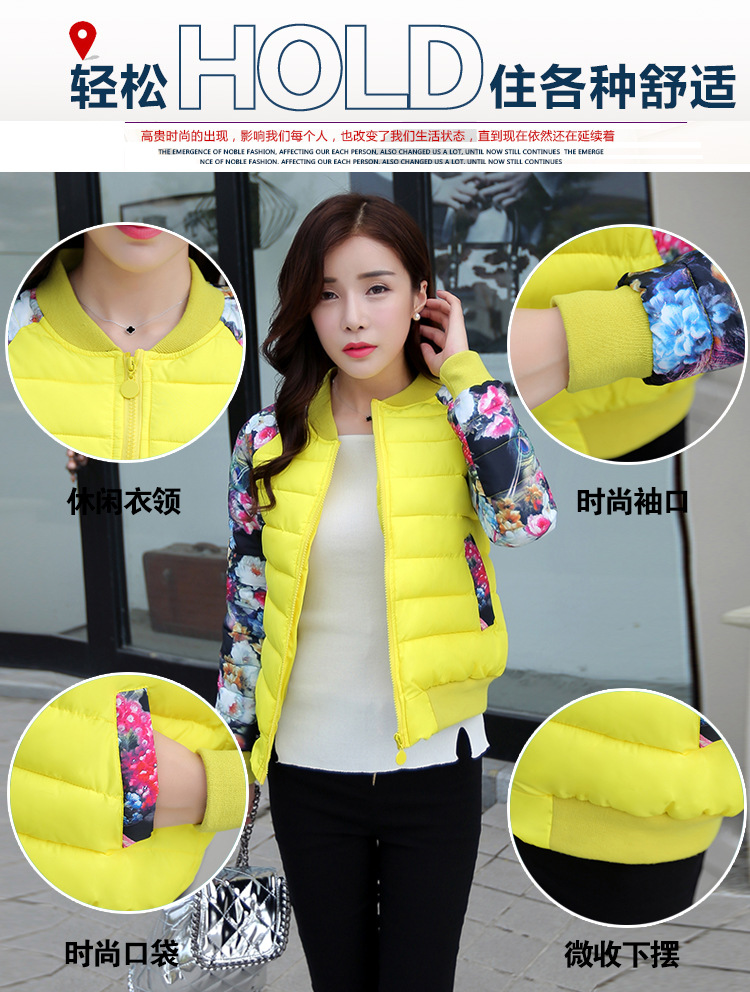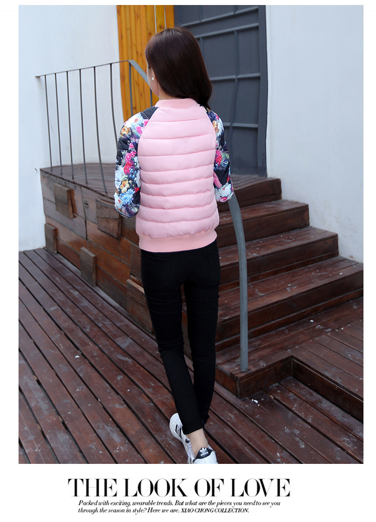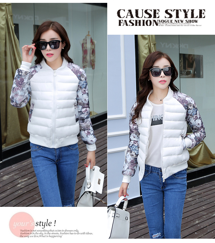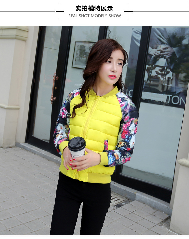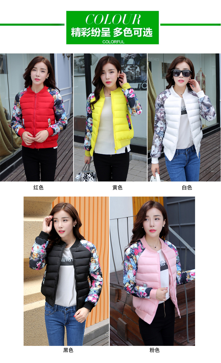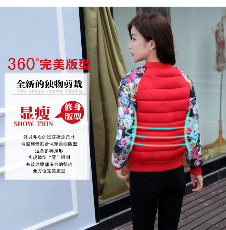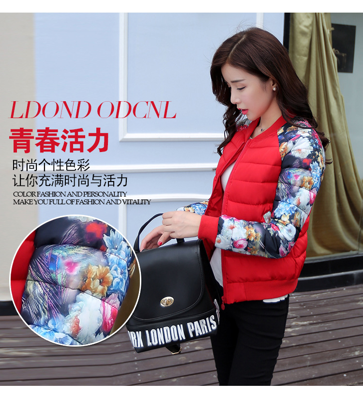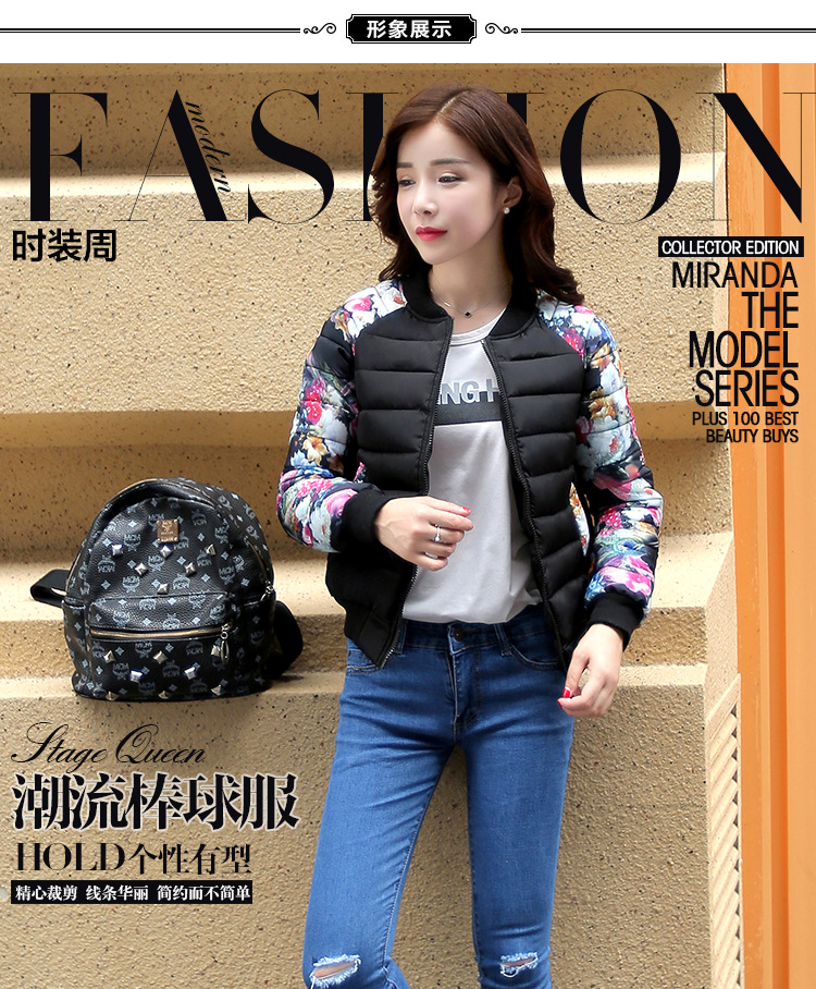 實拍2015冬季印花羽絨衣女夾克韓版修身短款棒球服外套小棉襖