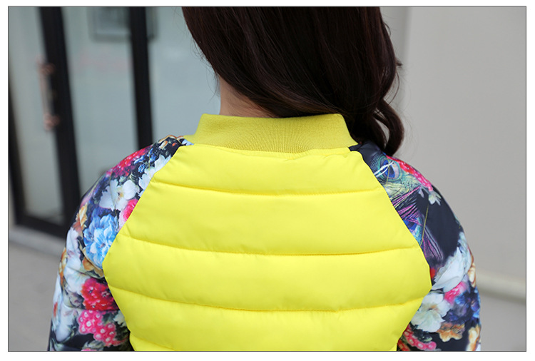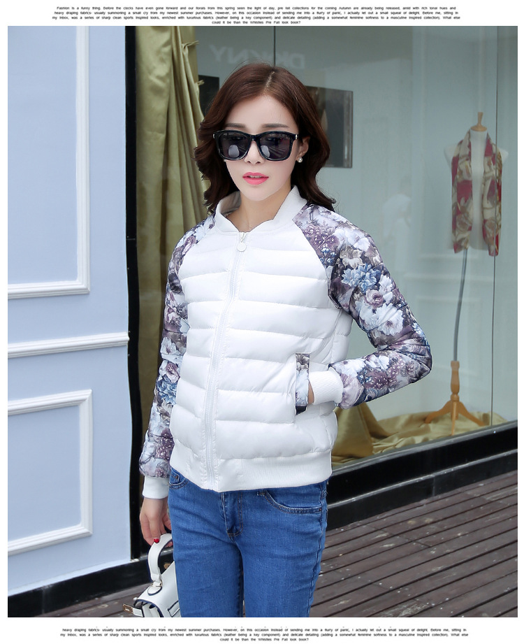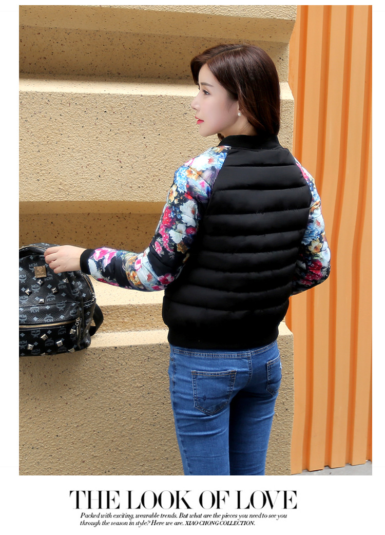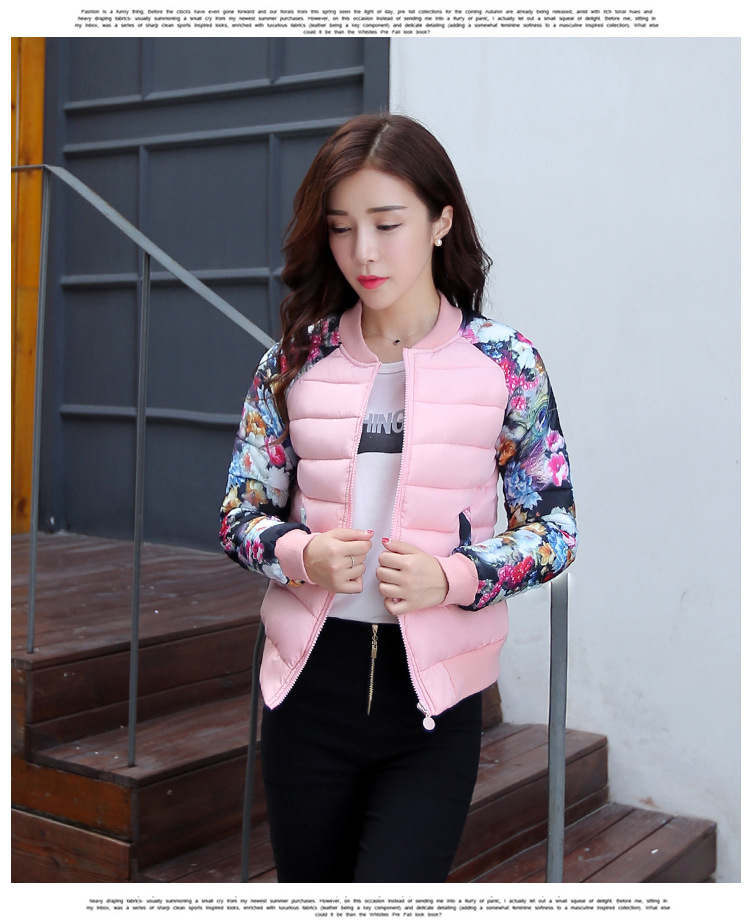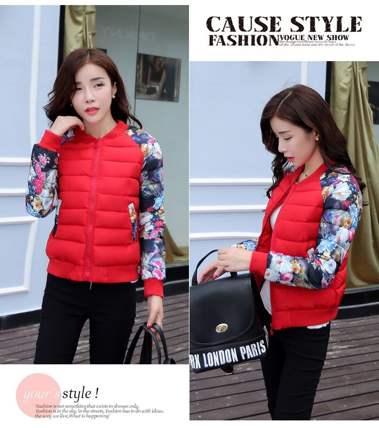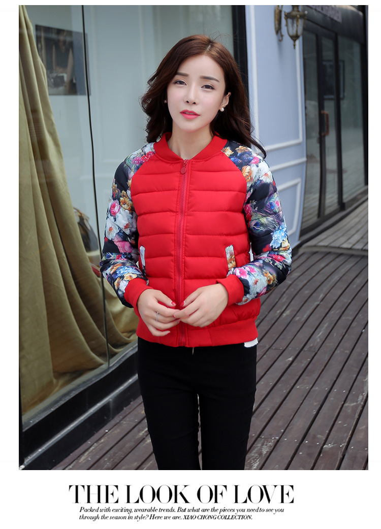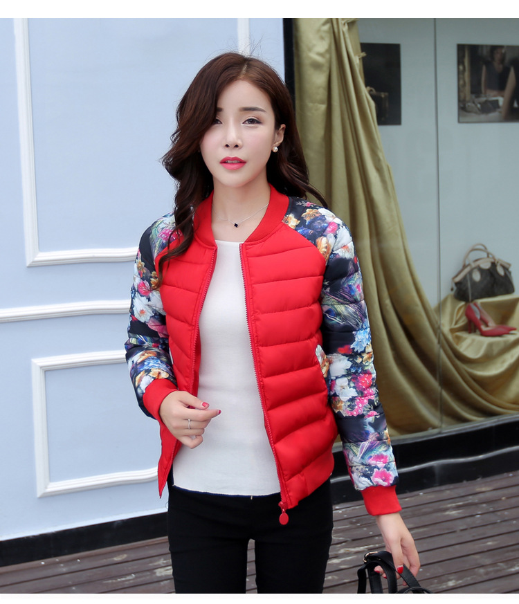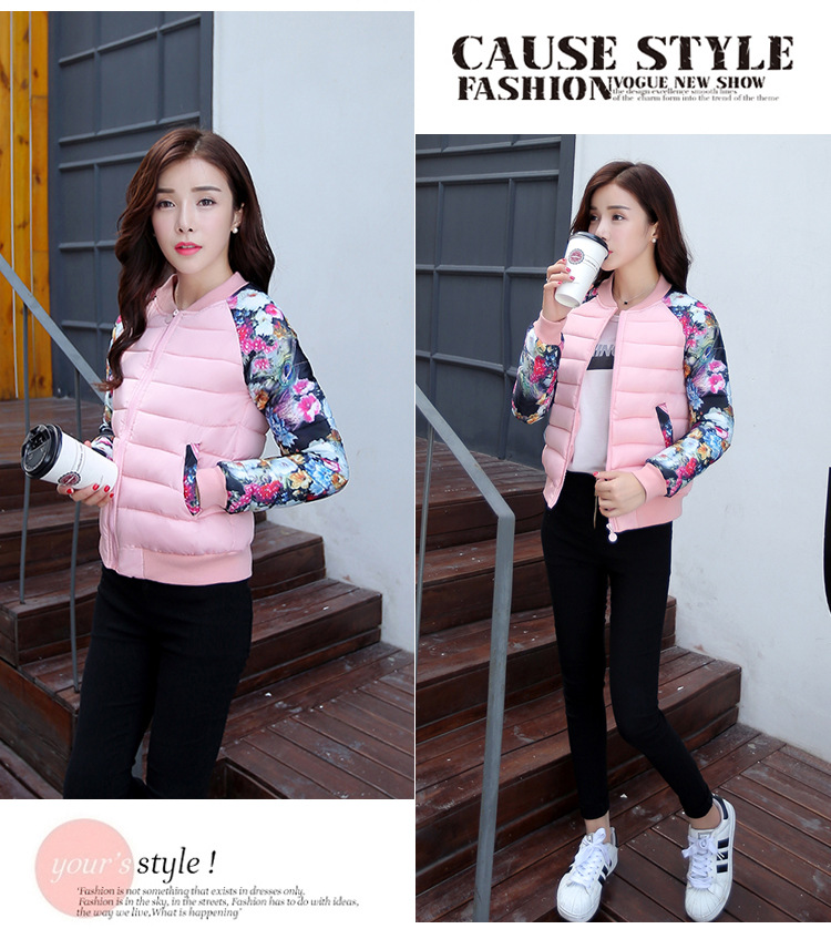 實拍2015冬季印花羽絨衣女夾克韓版修身短款棒球服外套小棉襖