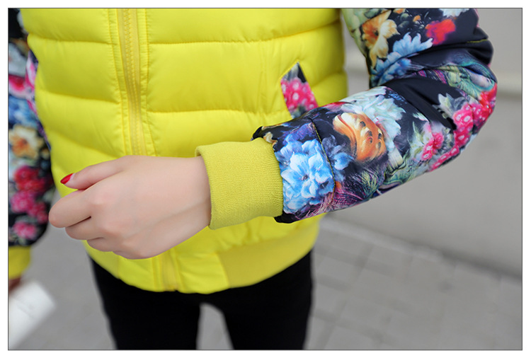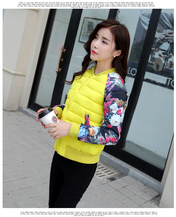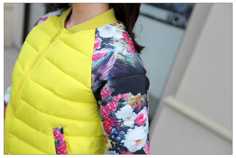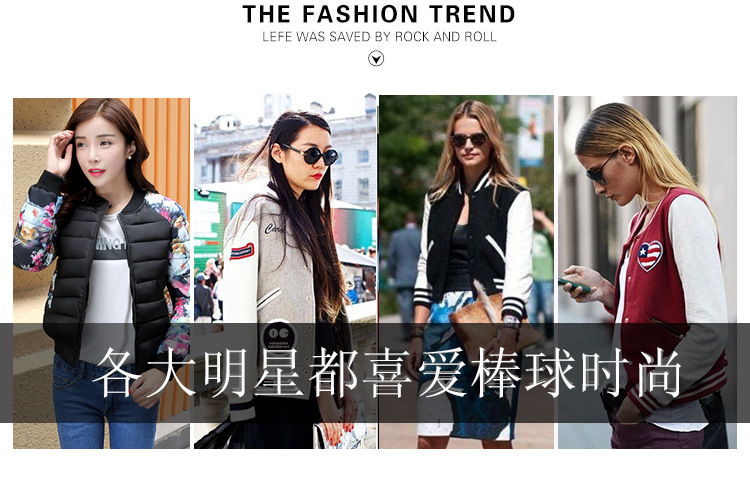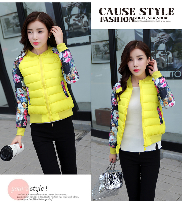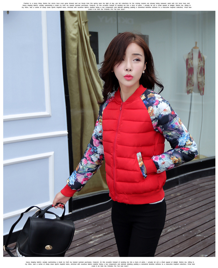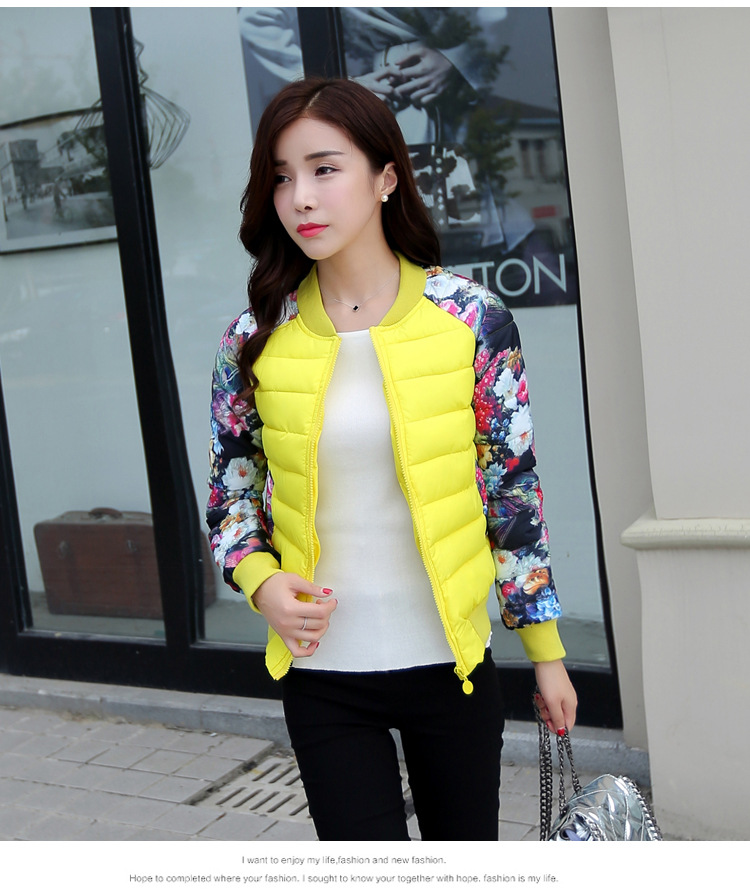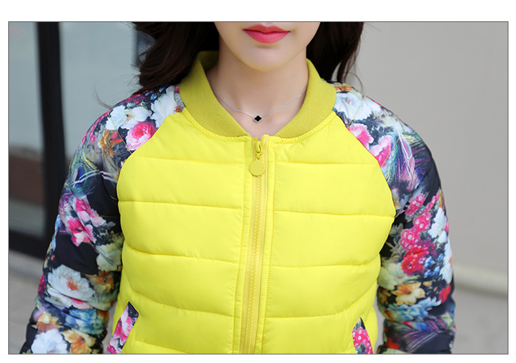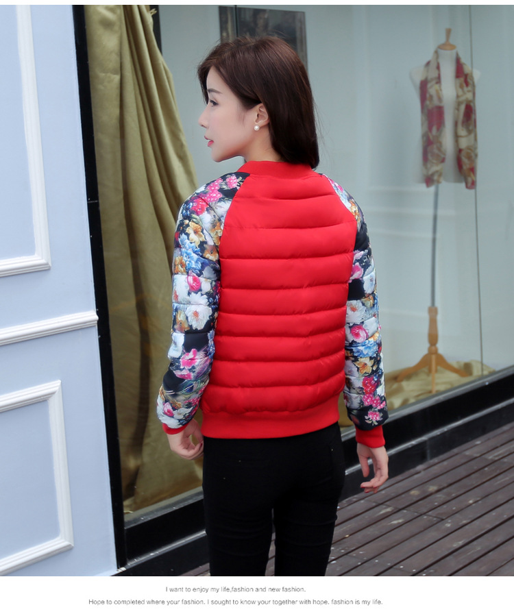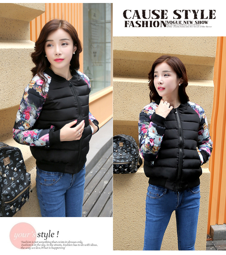 實拍2015冬季印花羽絨衣女夾克韓版修身短款棒球服外套小棉襖