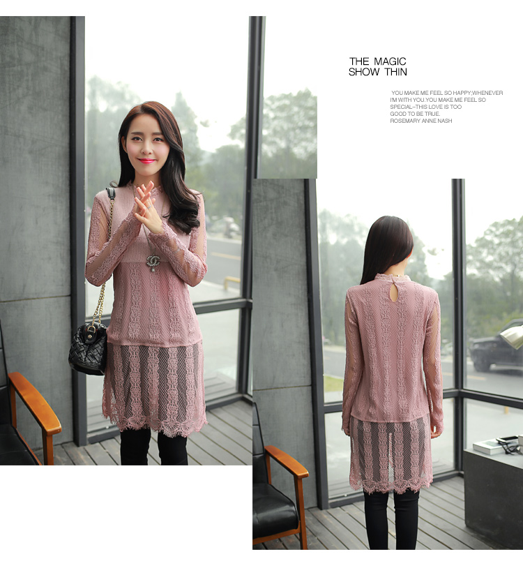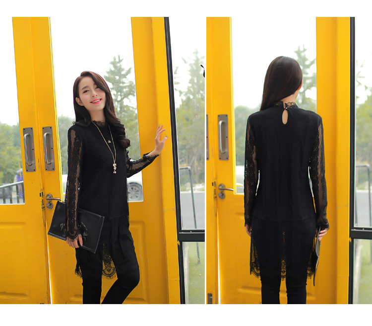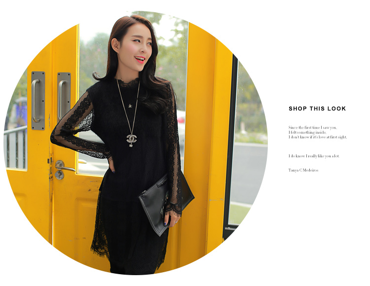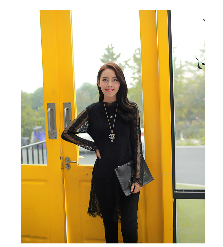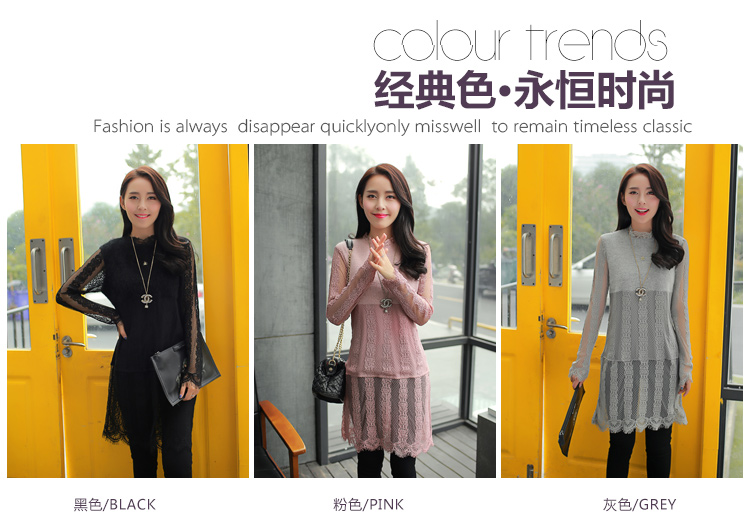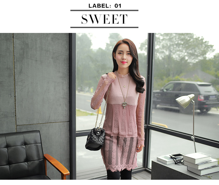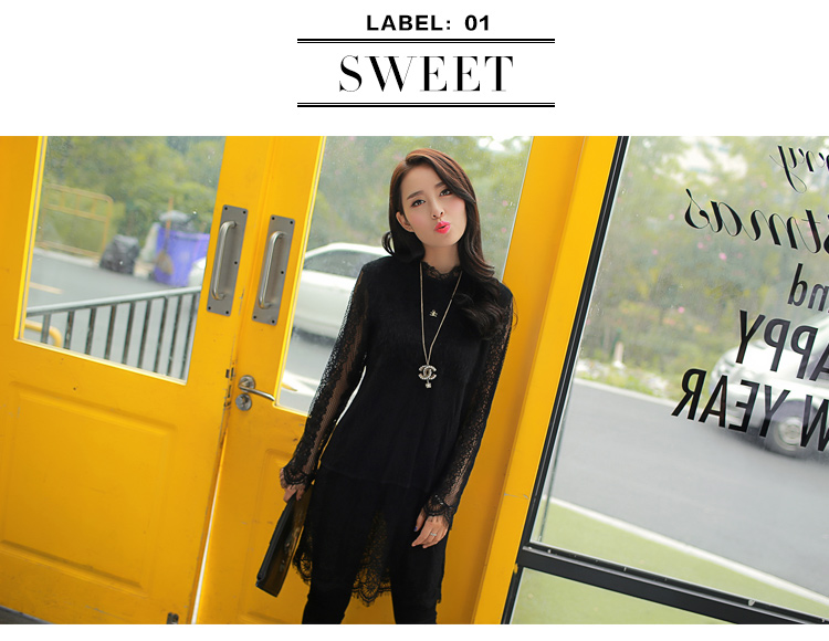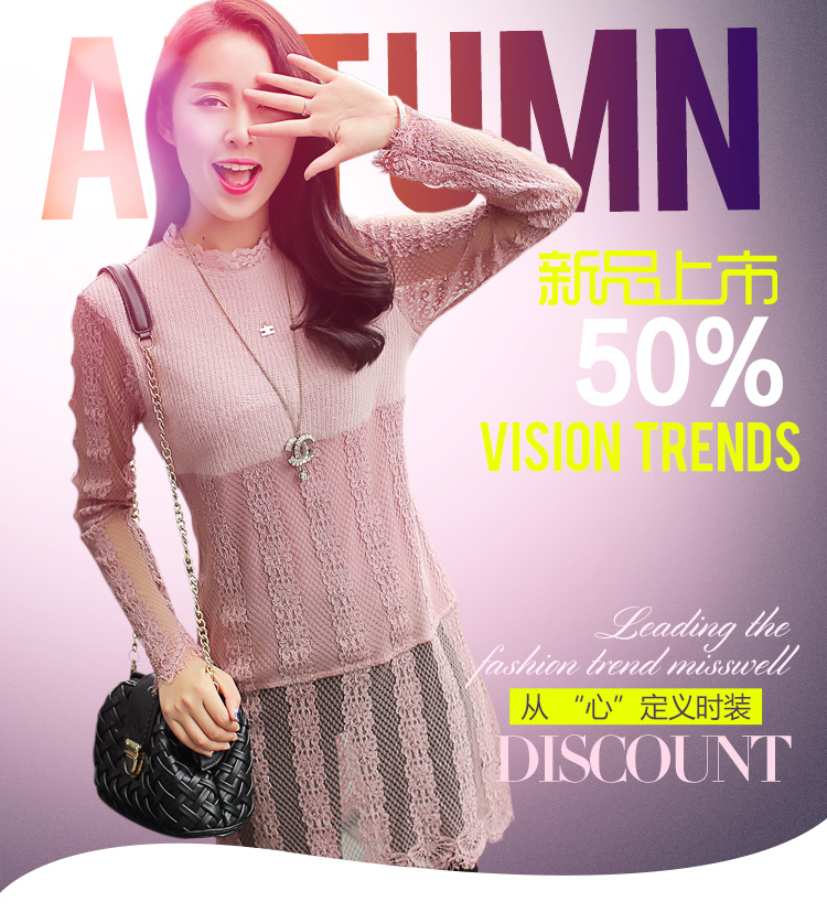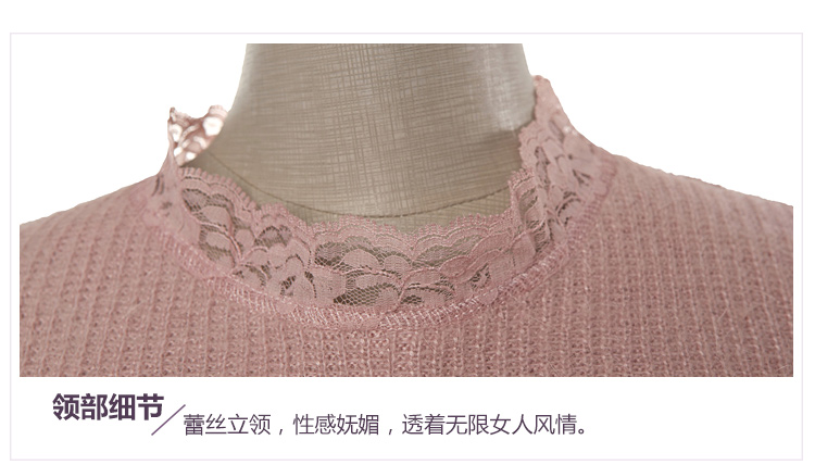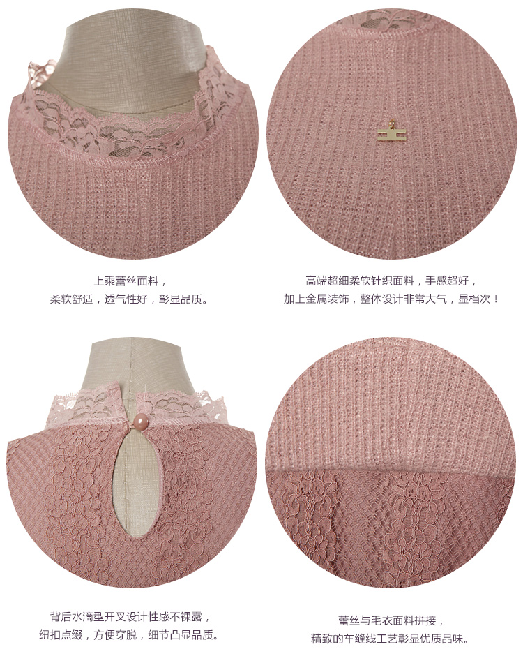 2015冬裝新款女裝高領繡花蕾絲拼接針織衫 中長款打底衫 代理加盟