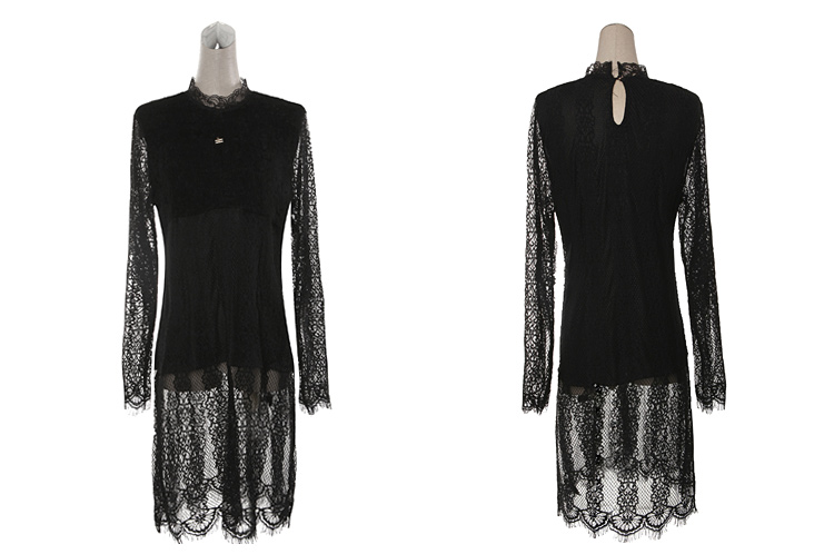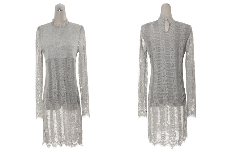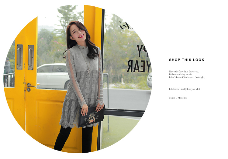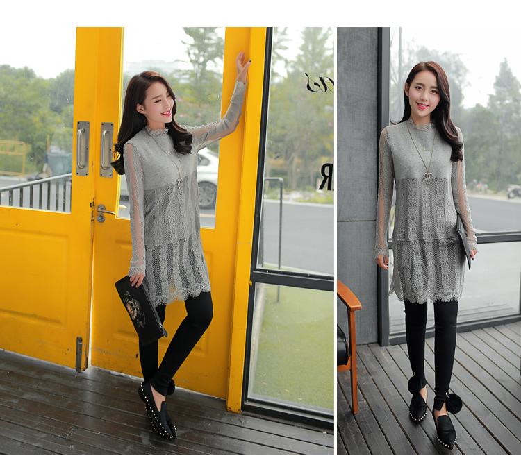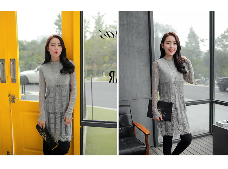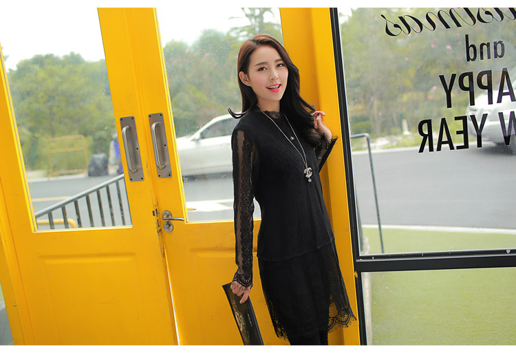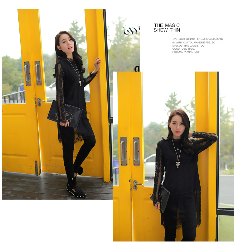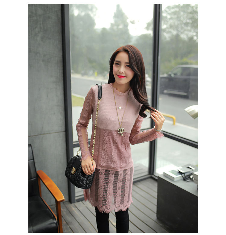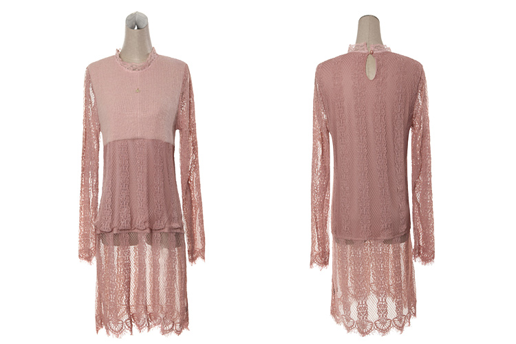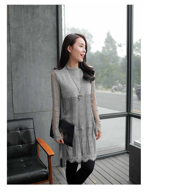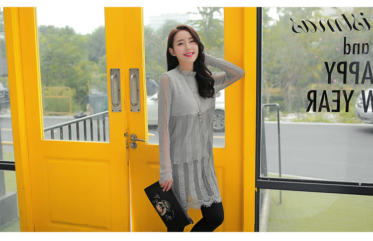2015冬裝新款女裝高領繡花蕾絲拼接針織衫 中長款打底衫 代理加盟