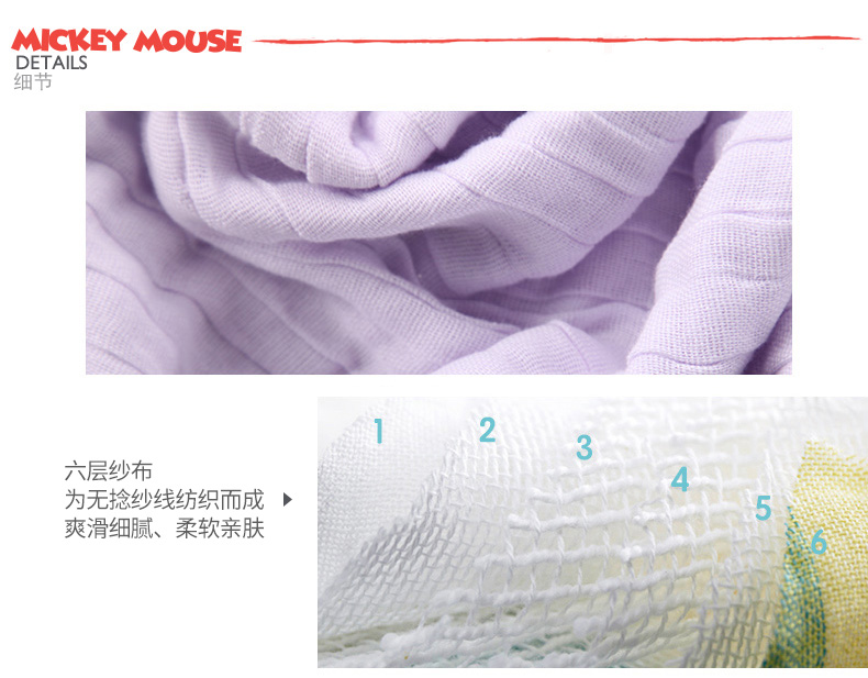 迪士尼Disney6重紗方巾6條裝禮盒 純棉紗佈毛巾 寶寶嬰兒童 A類