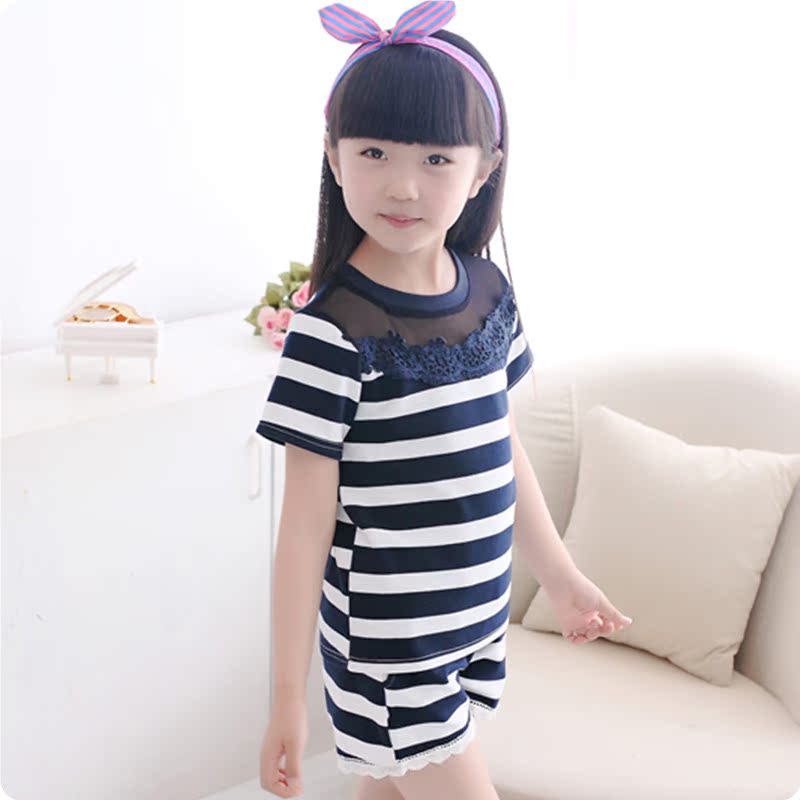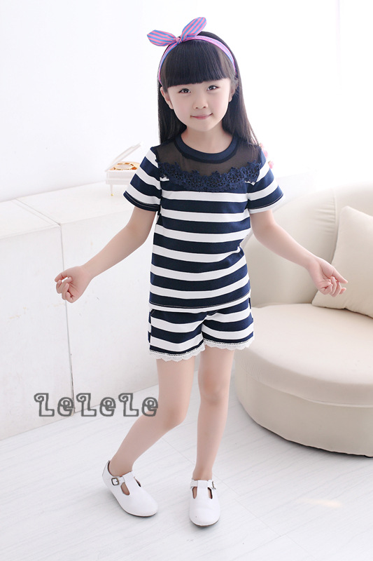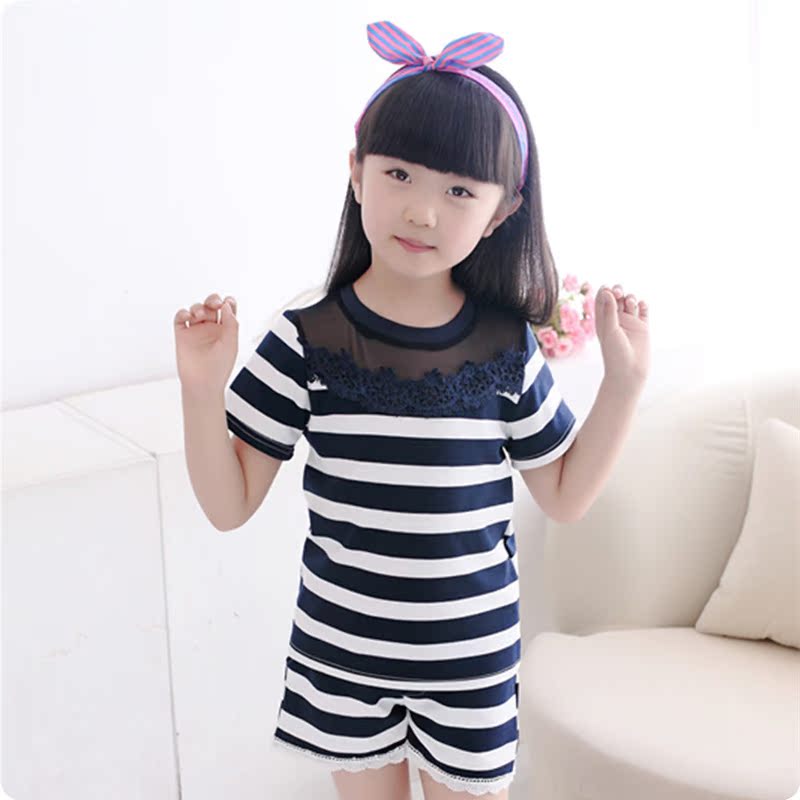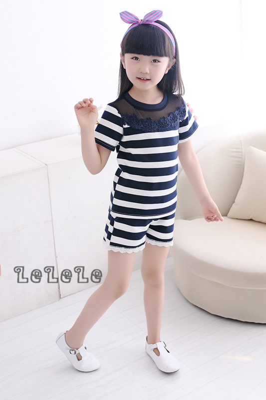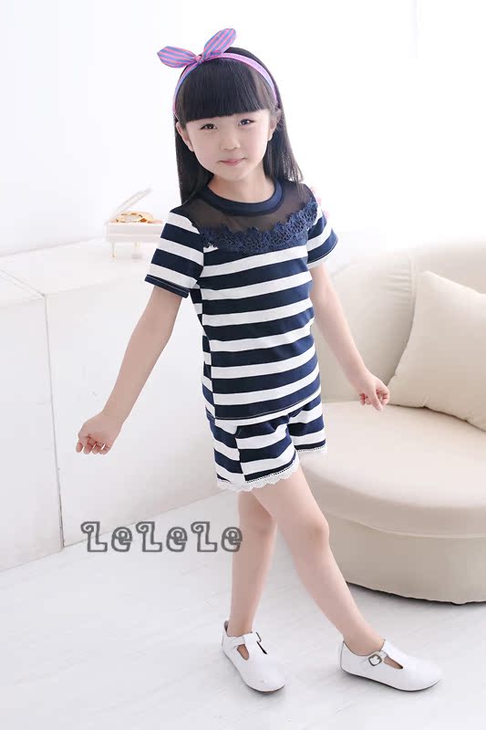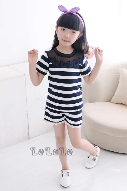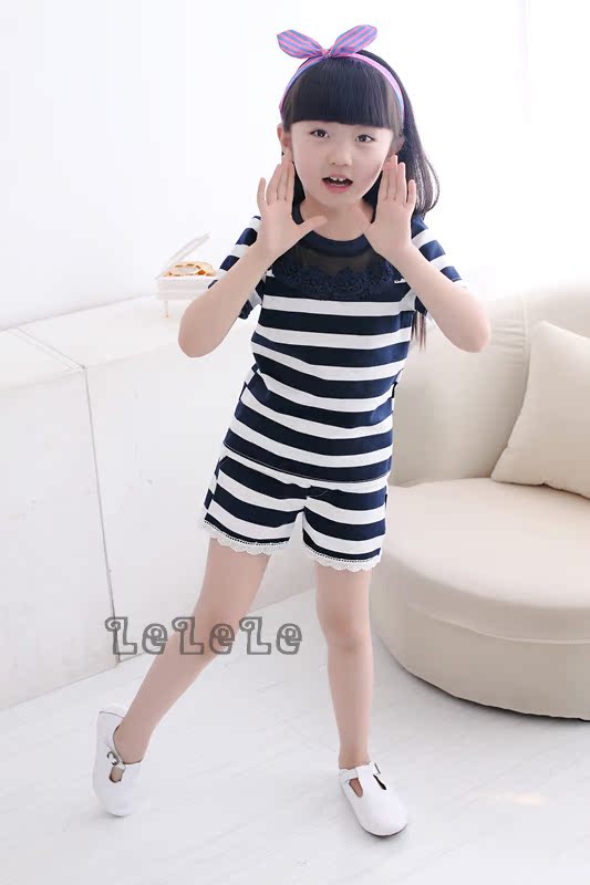 童裝韓版套裝批發2016春季新款厚料女童短袖T恤+短褲兩件套