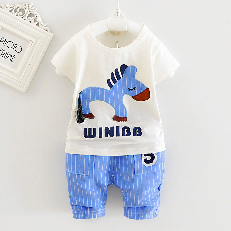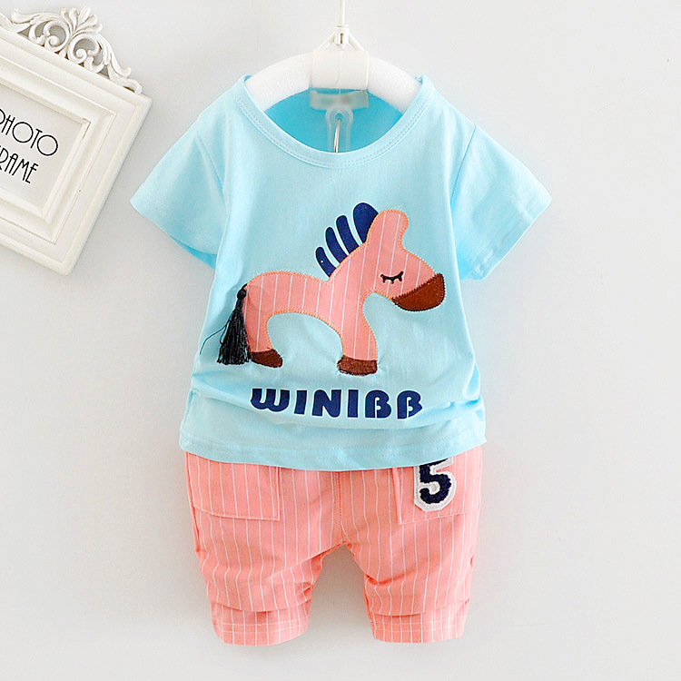 16韓版春夏童裝一件代發包郵 兒童短袖套裝卡通小馬寶寶純棉T恤