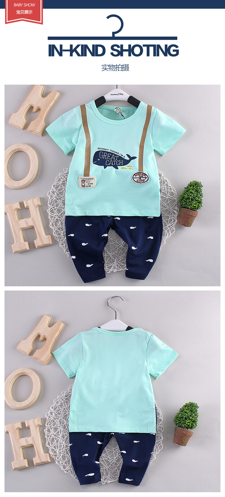 2016新款童裝男童短袖褲子夏季兒童休閒套裝0-1-3-5歲男寶寶夏裝