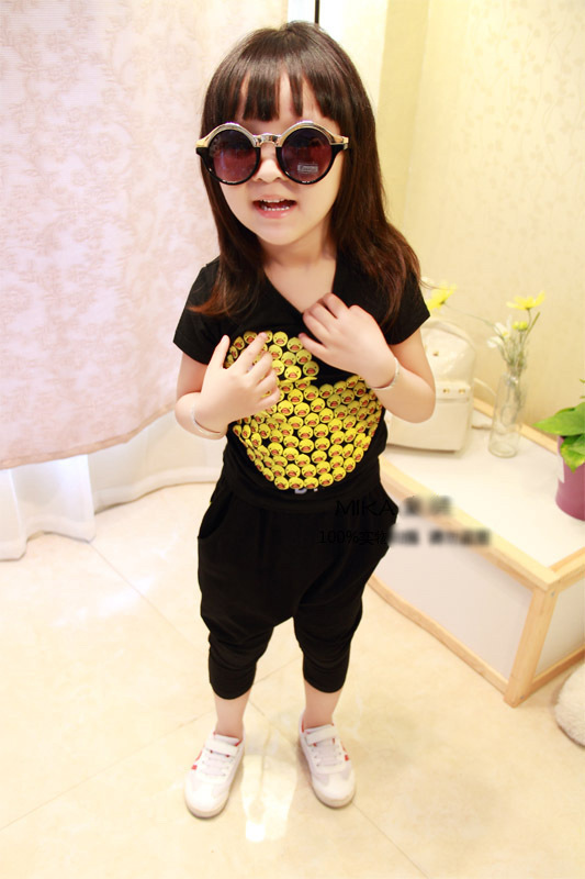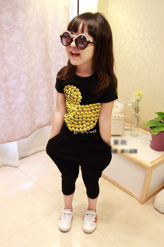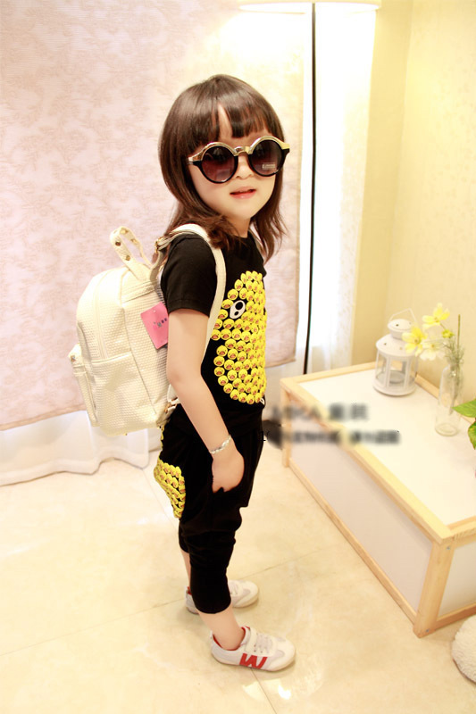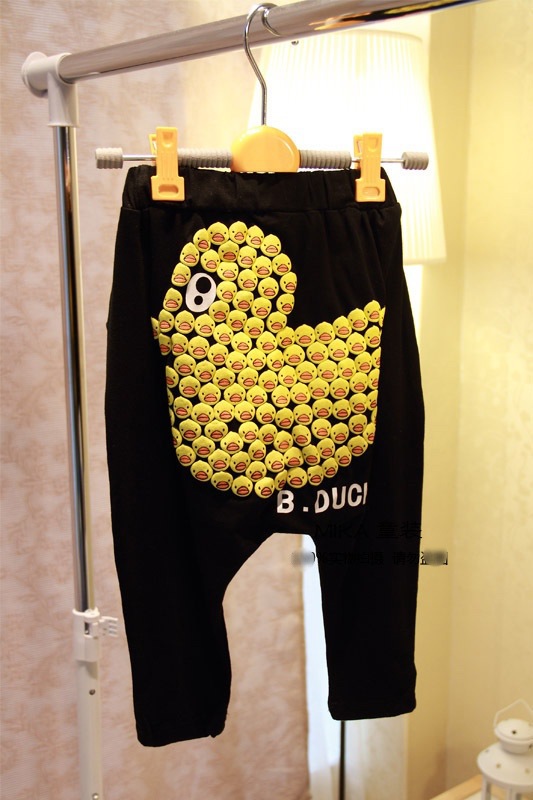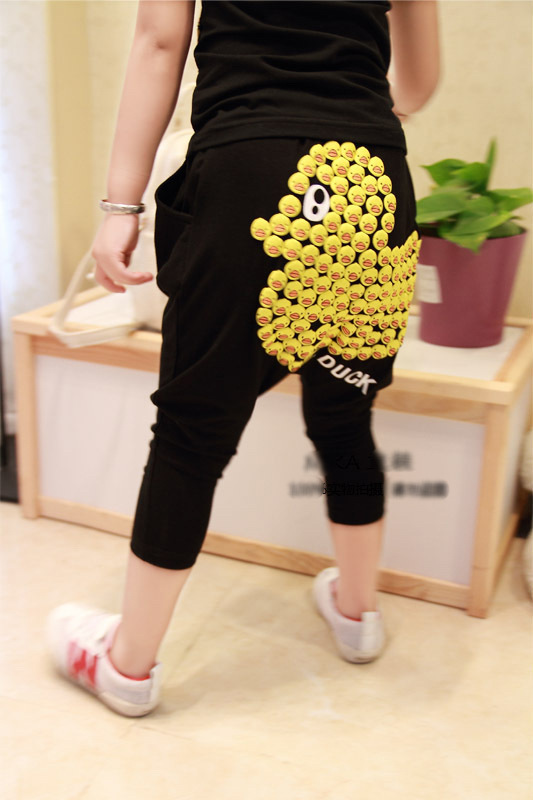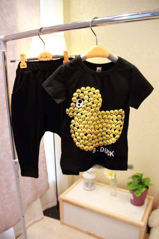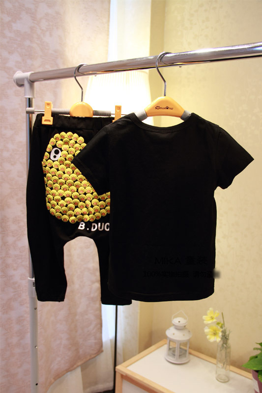 童裝2016夏裝新款 男女童寶寶卡通大黃鴨短袖+哈倫褲休閒兒童套裝