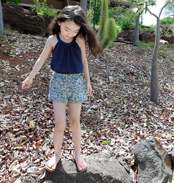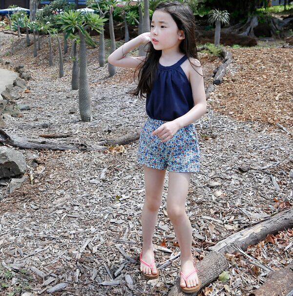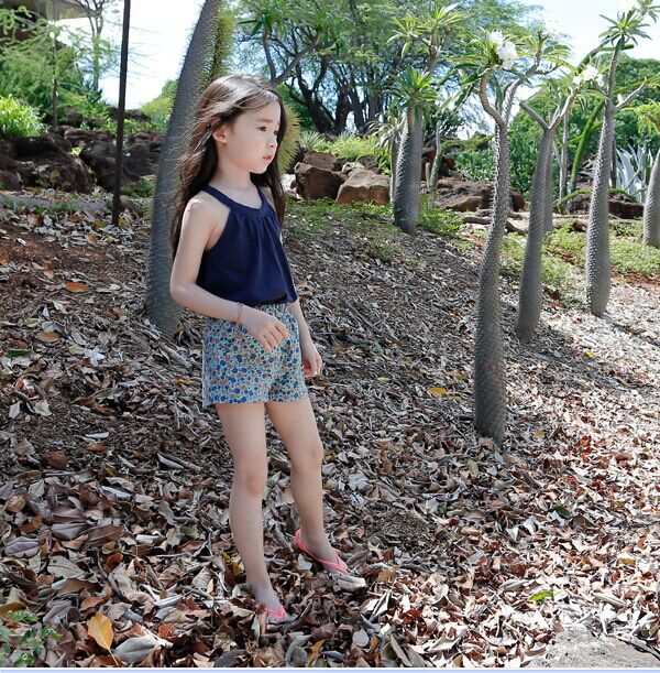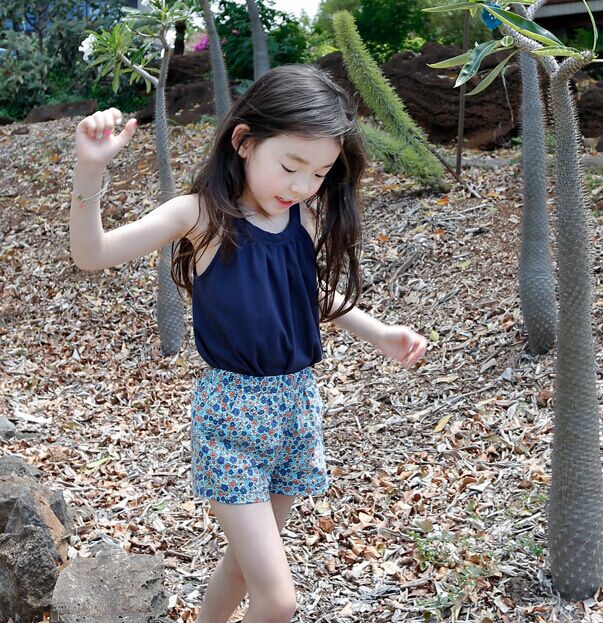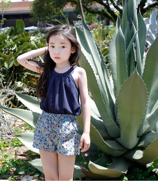 2016品牌童裝純棉吊帶上衣+純棉碎花短褲中大童套裝