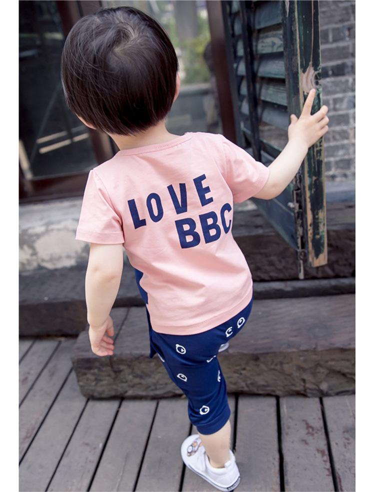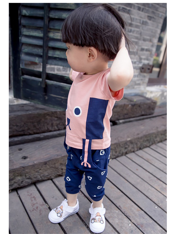 2016新款個性童套裝男童夏裝中小童兒童卡通狗兩件套童裝一件代發