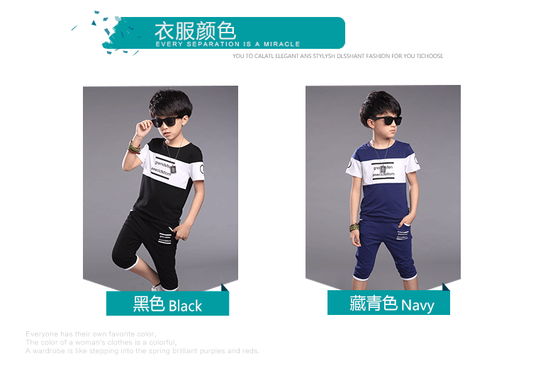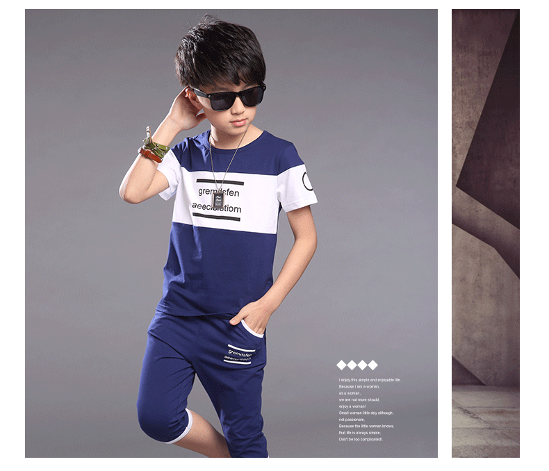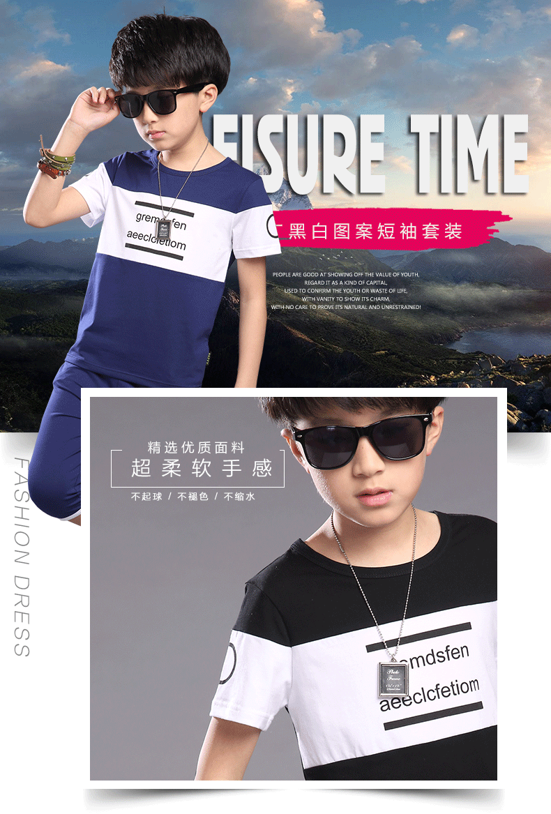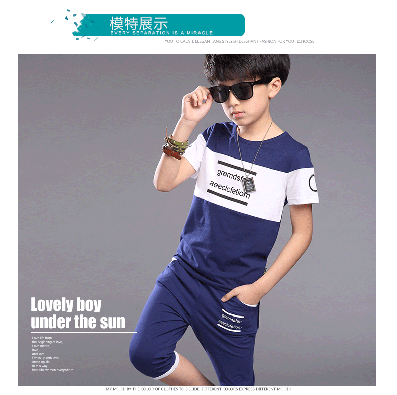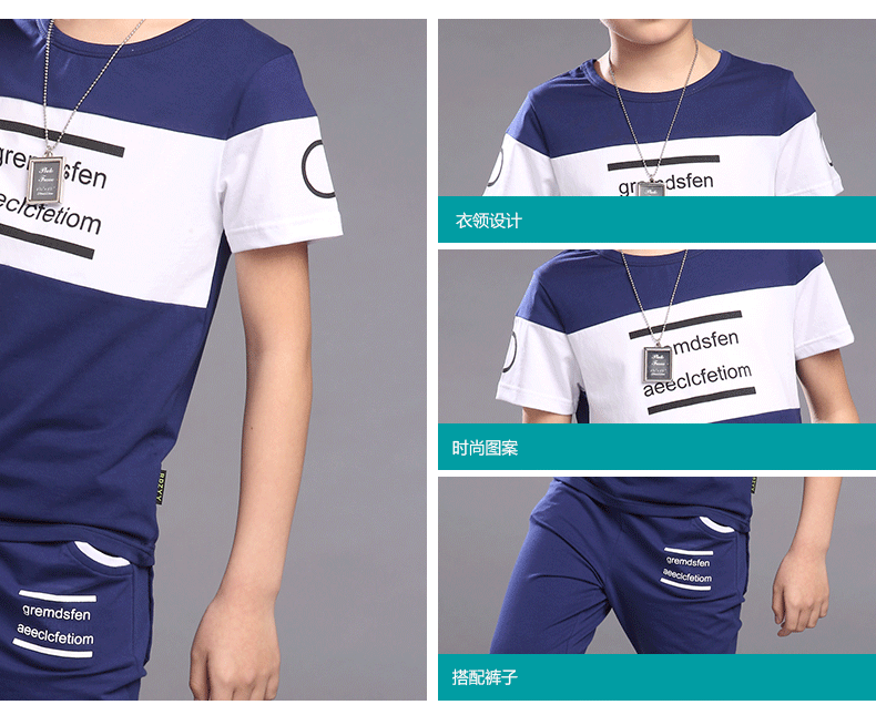 2016夏季新品 韓版時尚字母印花撞色男童中大童套裝代發【現貨】