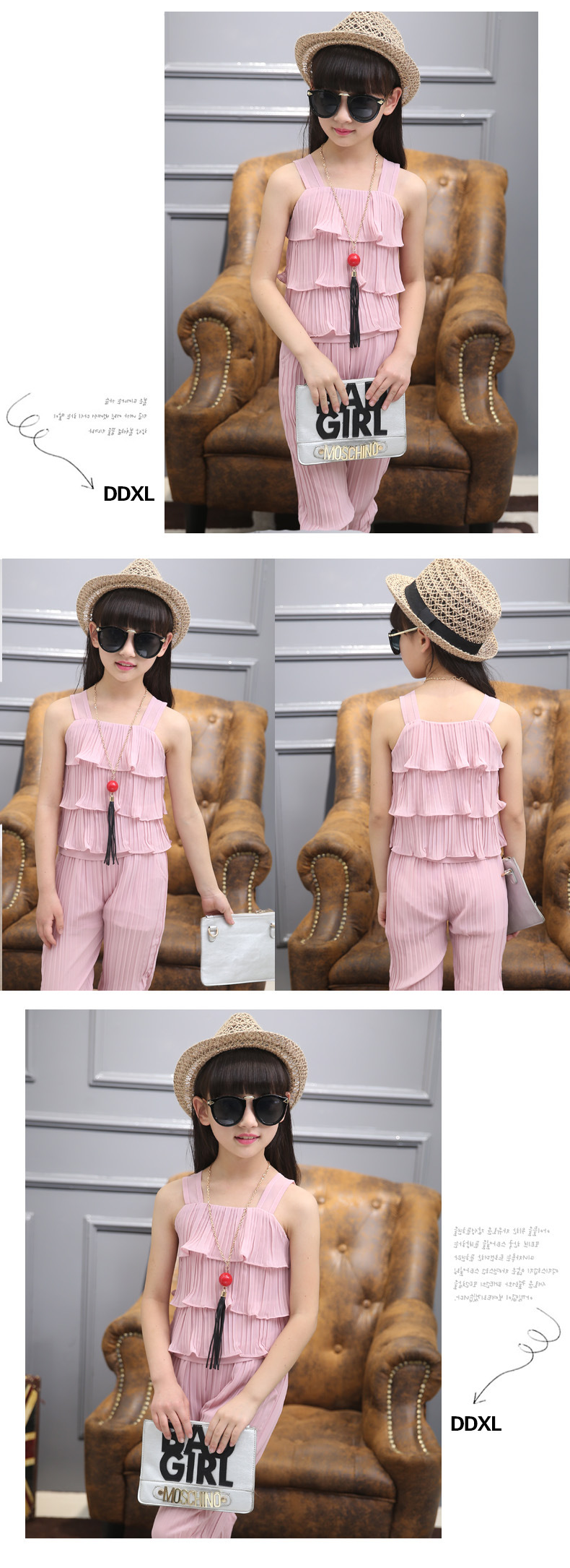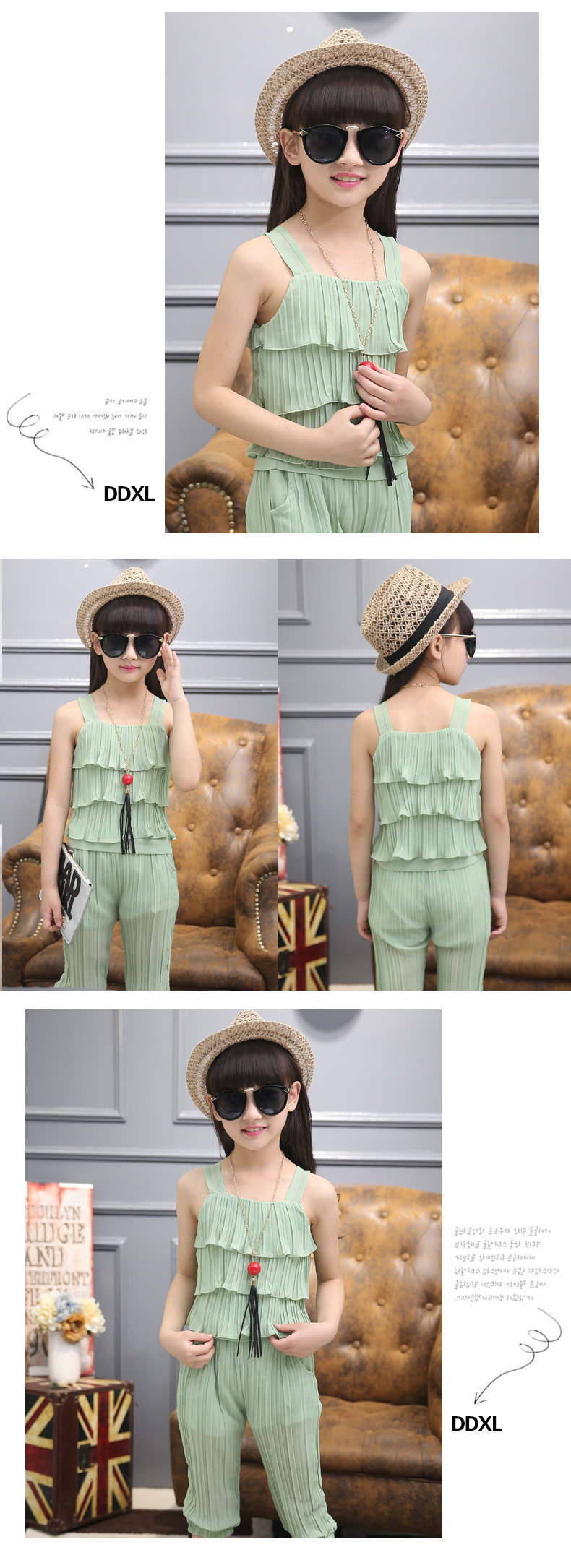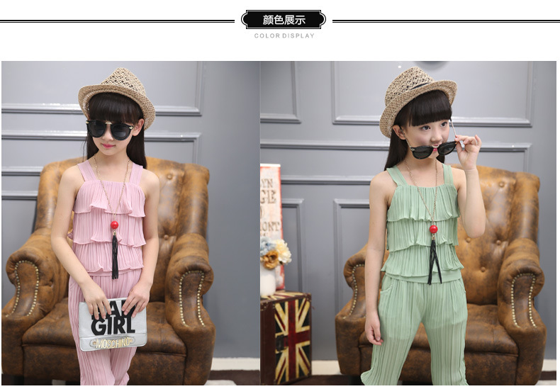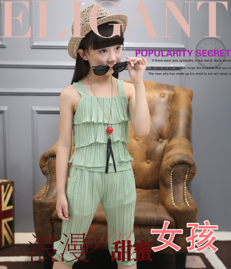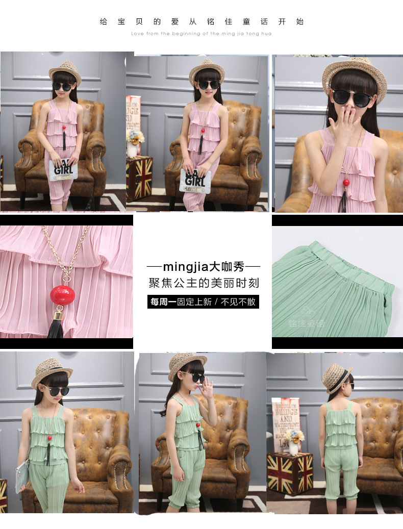 中大童2016夏裝新款女童無袖吊帶衫七分褲兩件套韓版時尚兒童套裝