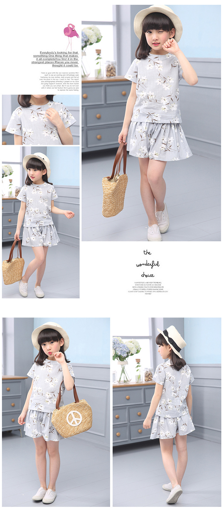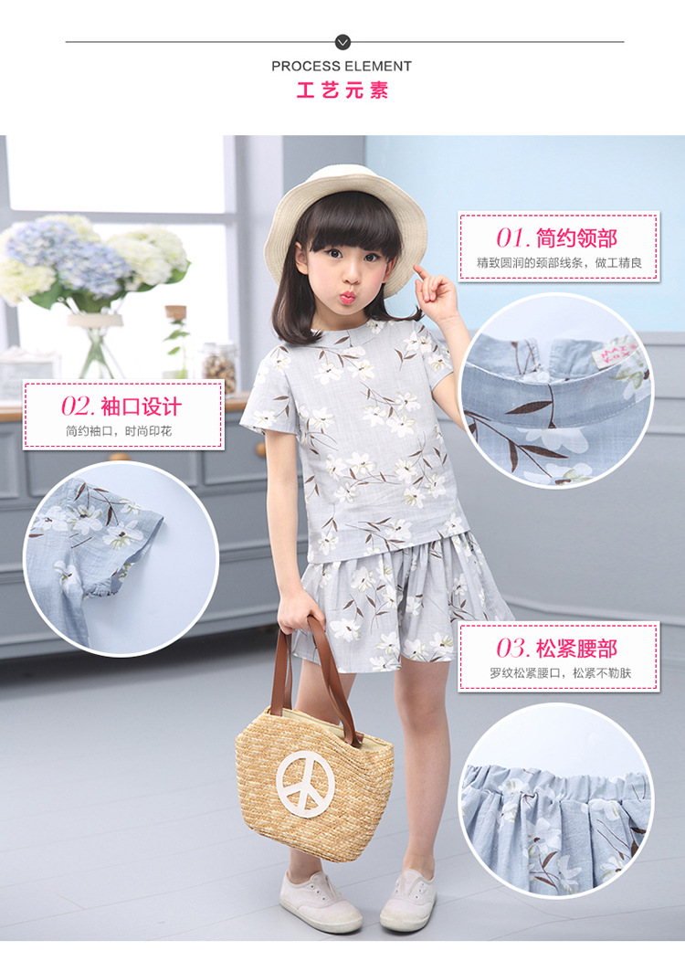 童裝女童夏裝套裝2016新款夏季兒童短袖純棉小女孩中大童兩件套裝