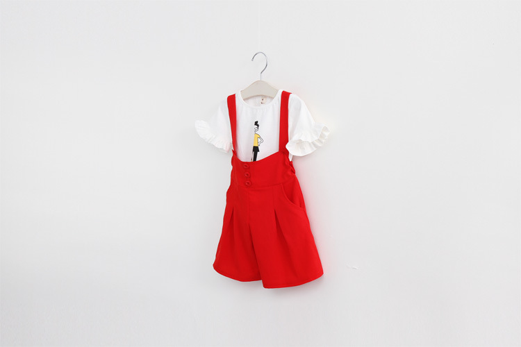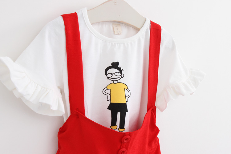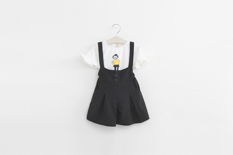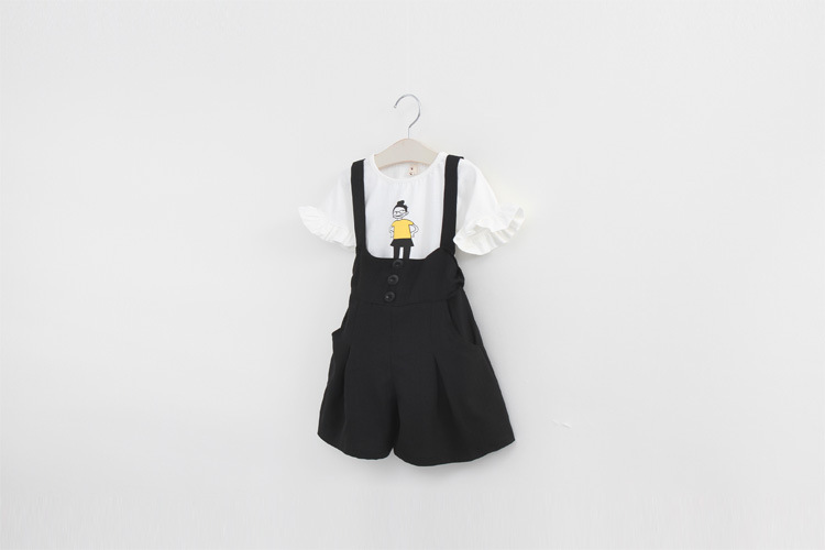 海曼兒 2016夏款 韓版 外貿童裝批發 卡通小人女兒童背帶褲套裝