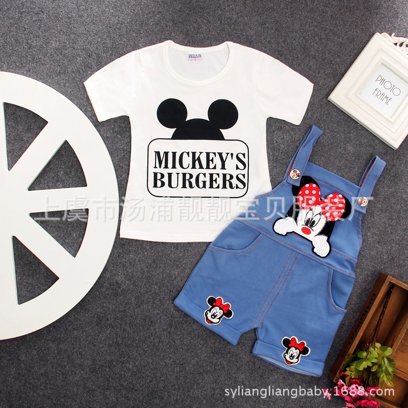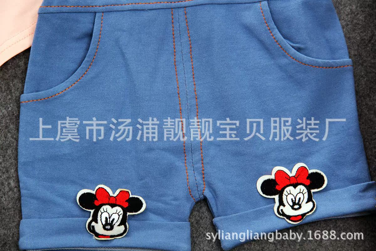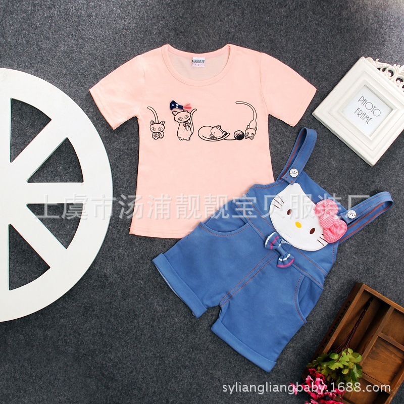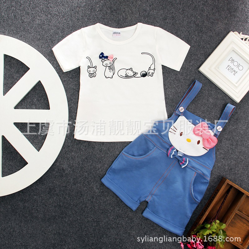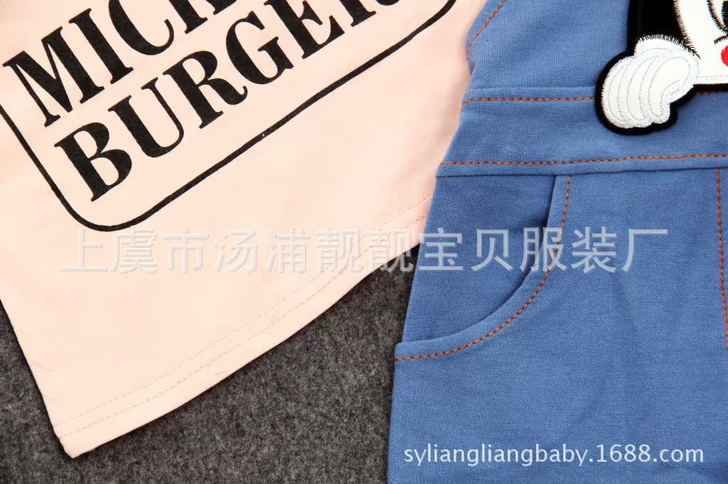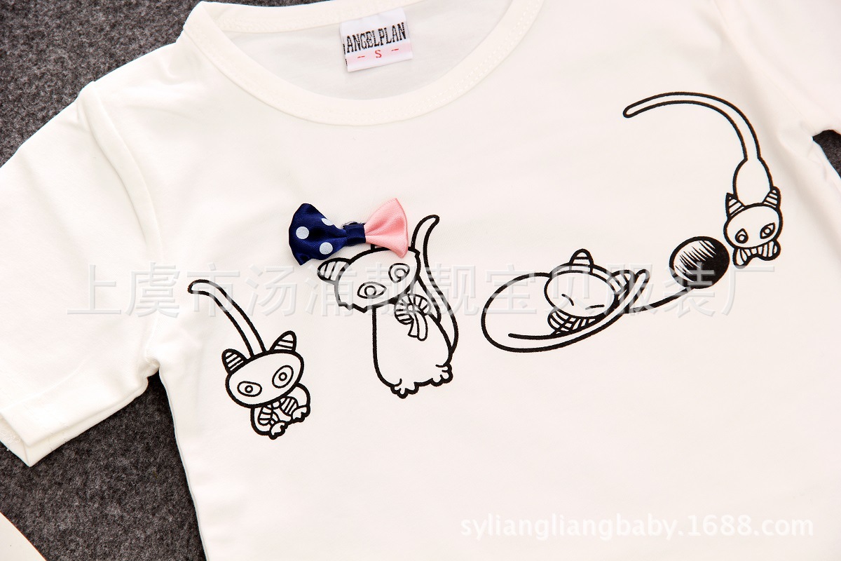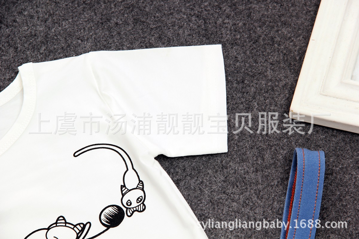 2016新款爆款純棉韓版女童男童中小童短袖童裝兩件套褲套裝廠傢