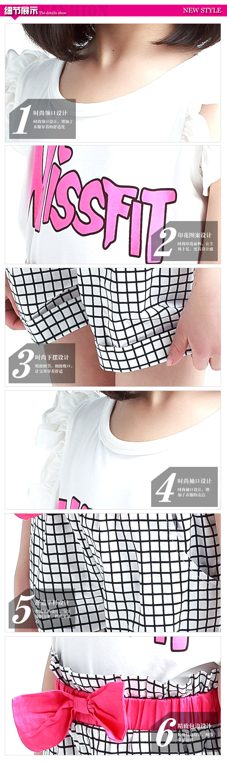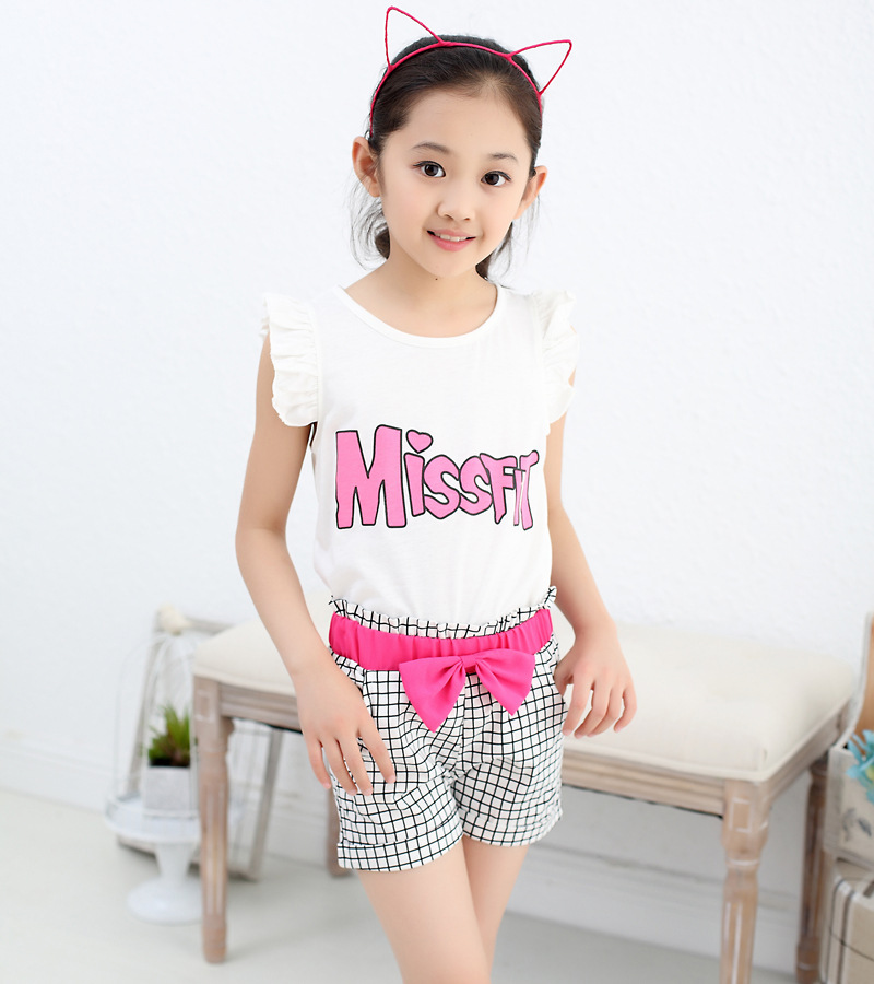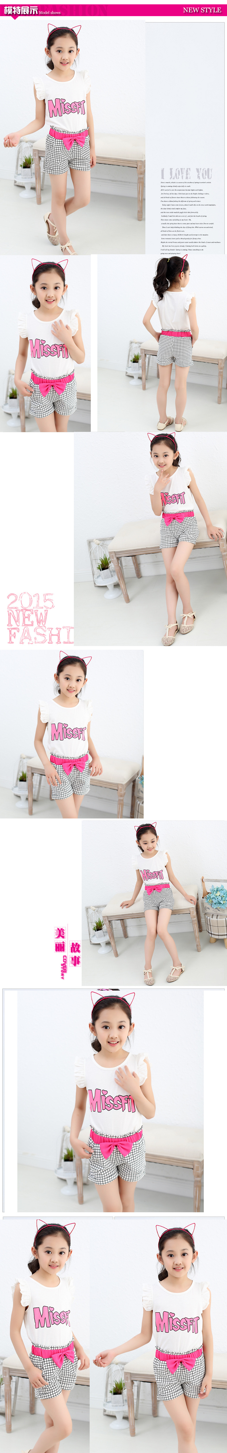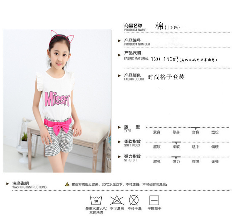 2016新款時尚女童斑馬格子套裝火爆出貨,全棉,麵料