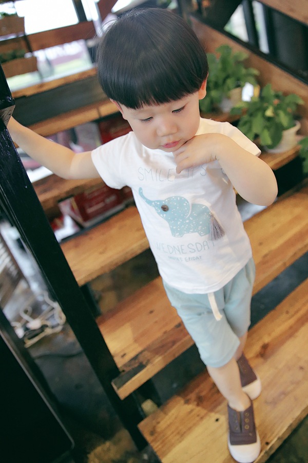 童裝新品男女童寶寶套裝 品牌2016中小童韓版小象短袖兩件套