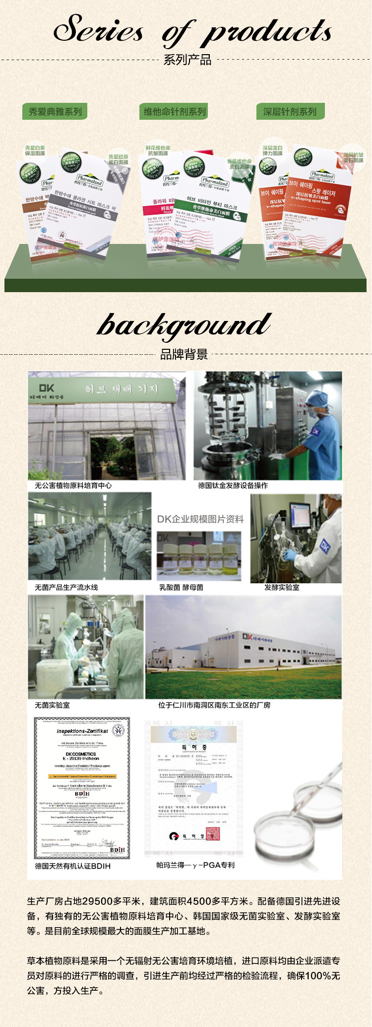 | 富含植物成分,使皮膚潤澤細膩緊致補水,鎮定肌膚,含有皮膚所需的重要物質膠原蛋白,可以補充皮膚所需養分,使皮膚飽滿,有效緩解皺紋的形成。植物纖維織造裁剪麵料,具有良好的貼合度。 |