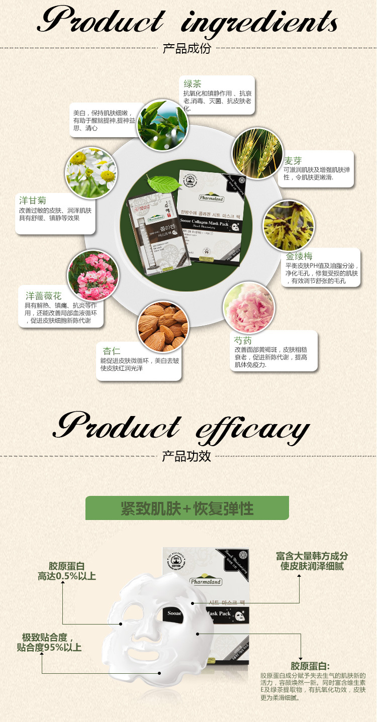 - 主要功效:膠原蛋白麵膜緊致肌膚 活化細胞恢復彈性