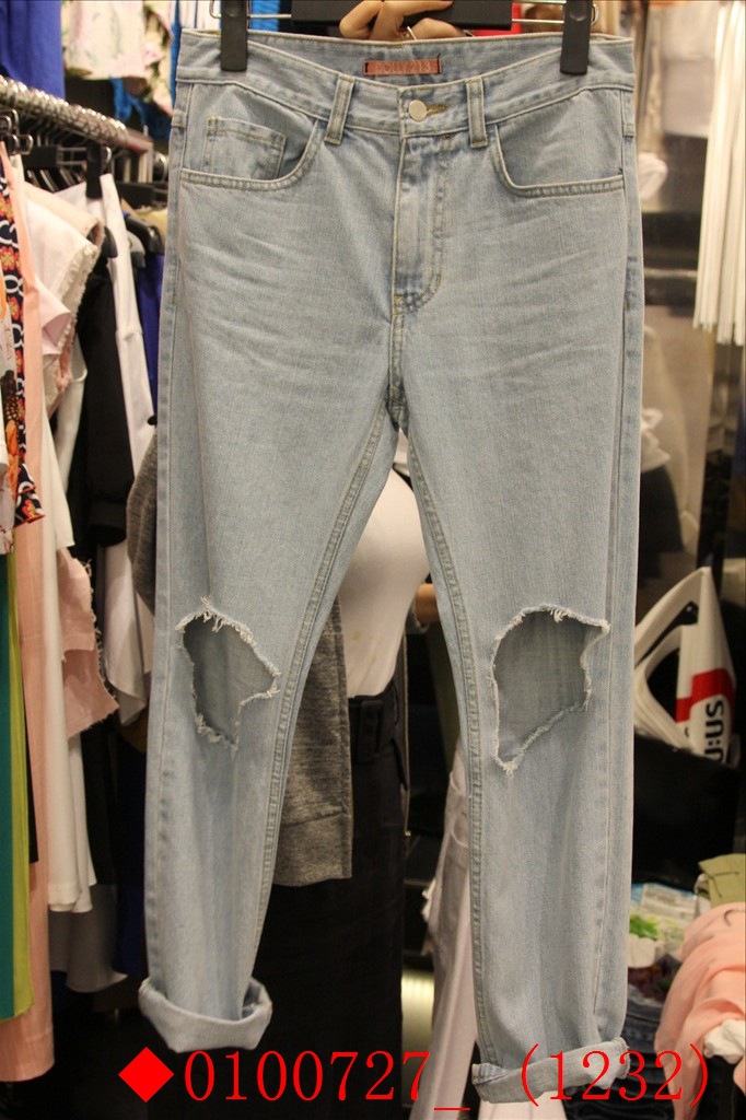 2015春夏新款韓國代購東大門女裝正品批發破洞卷邊牛仔哈倫乞丐褲_韓國正品代購女裝_韓國代購_熱賣商品批發_貨源_批發一路發