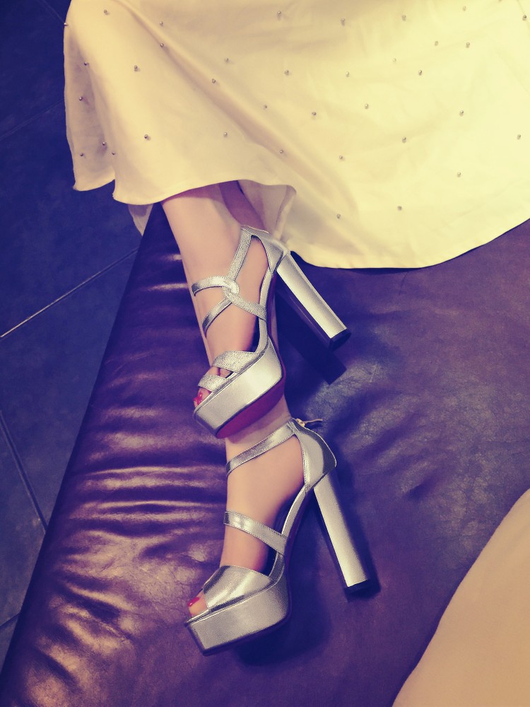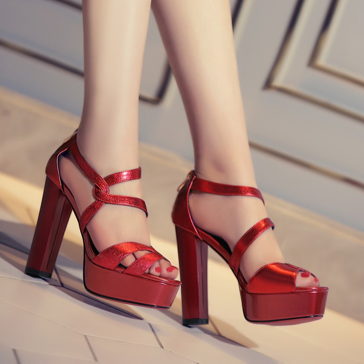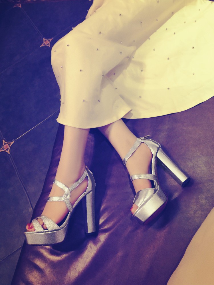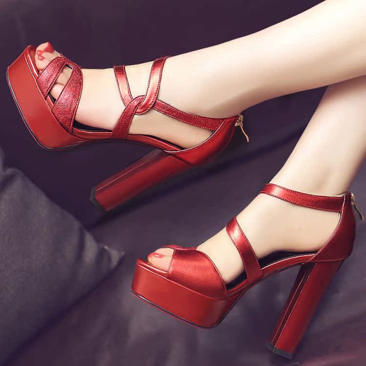- 流行元素:時裝涼鞋 歐美 粗跟 純色