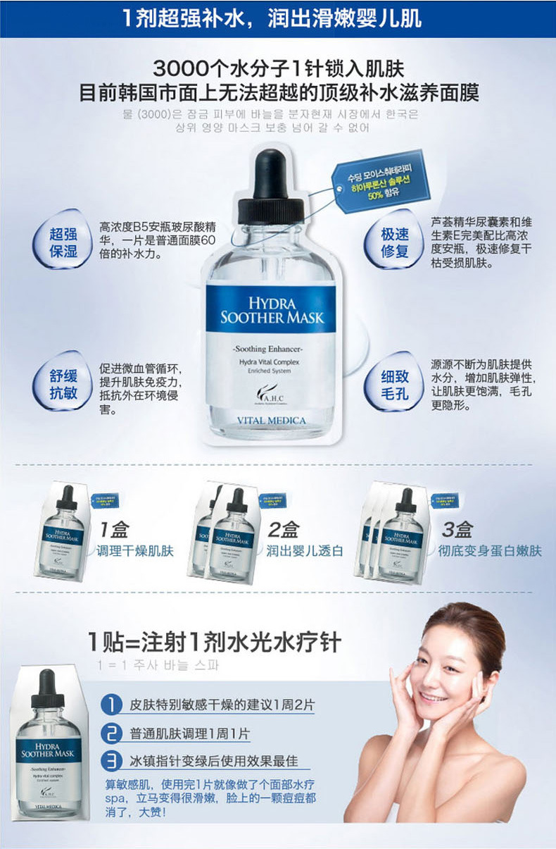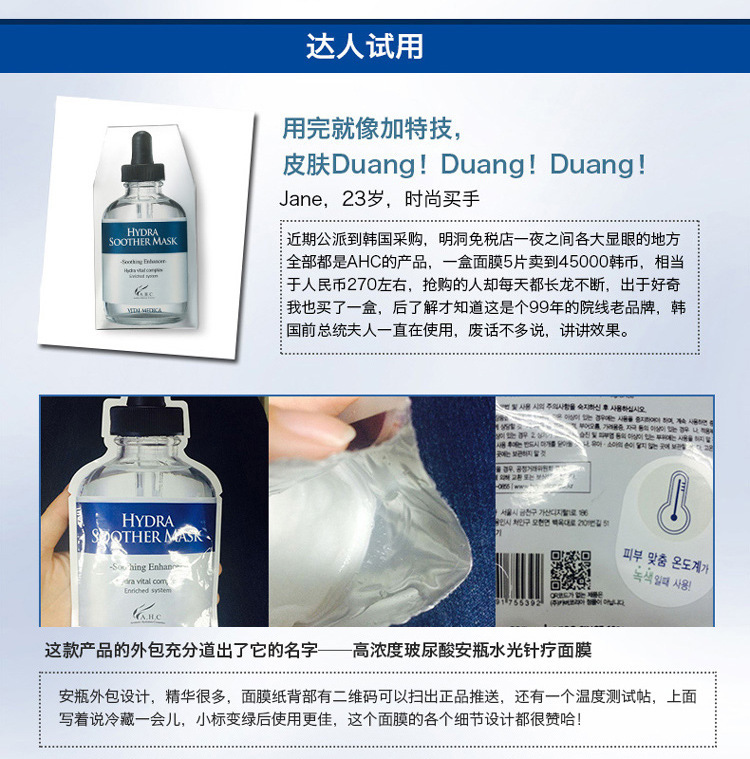 韓國ahcb5玻尿酸水光針麵膜, 所有肌膚可用,特別推薦給鬆弛、暗啞、疲倦或缺水肌膚。