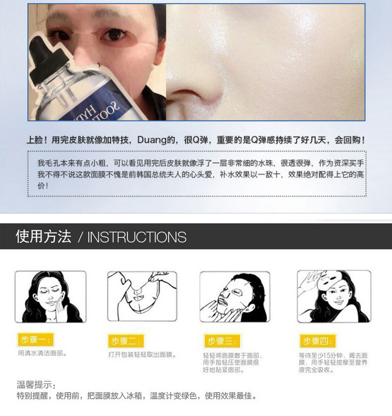 麵膜放入冰箱保存,背後溫度指針貼變綠色時候使用效果最佳~