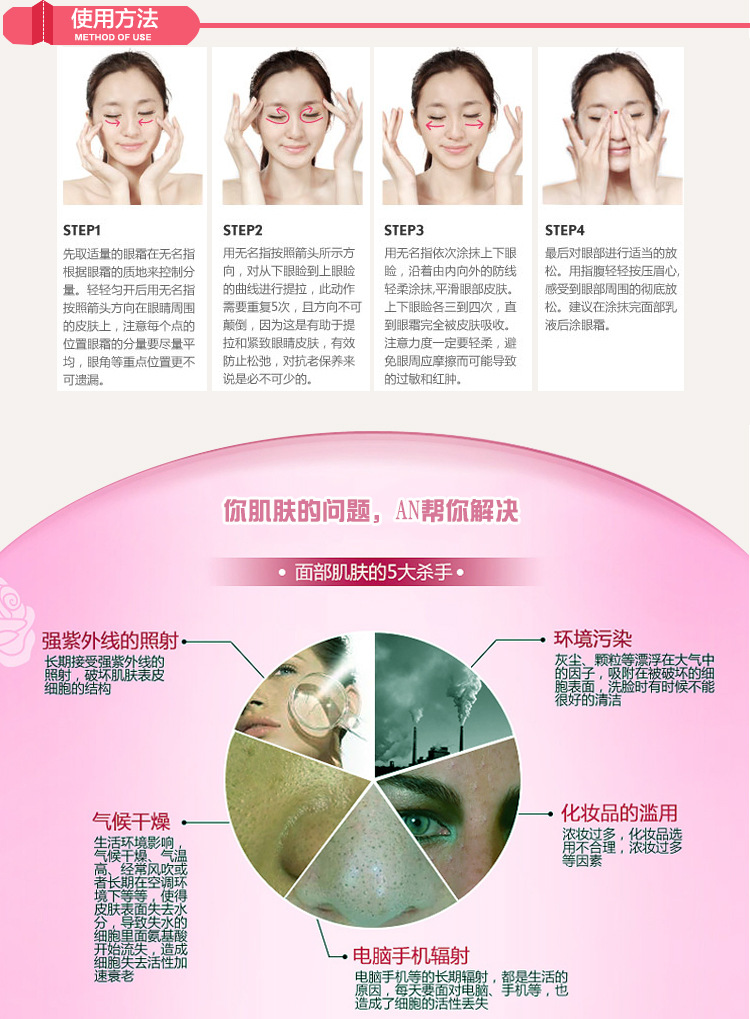 功效:用溶解多孔性礦物質的高分子聚合物接觸弱酸性皮膚時,吸收空氣中的二氧化碳轉化成膠狀,在轉化為膠狀的過程中多孔性無機物吸附皮膚內的排泄物並分解脂肪,拉緊下垂的皮膚,改善皺紋,恢復成具有彈性的皮膚