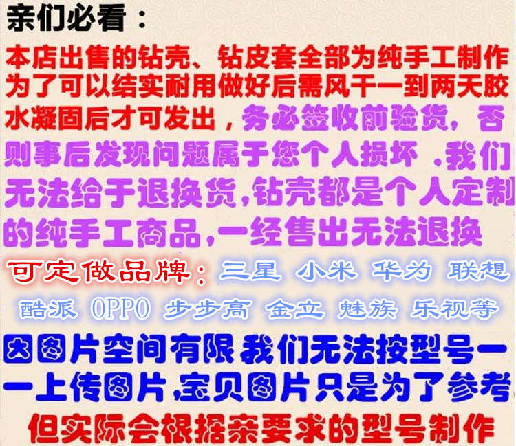 提醒親們註意:本店所有鉆殼均為透明硬殼鑲鉆哦,不清楚的親可以聯系在線客服哦!!!