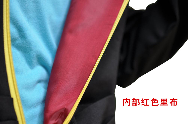 麵料:製服呢佈料+紅色裡佈+圖案印花
