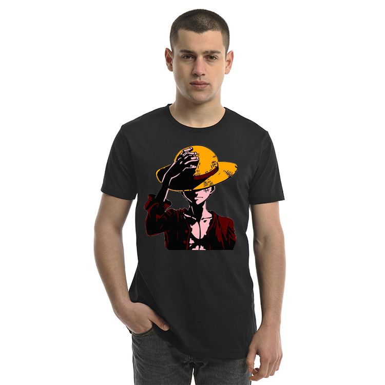 3D效果海賊王印花T恤夏季男式直筒純棉短袖個性體恤衫來