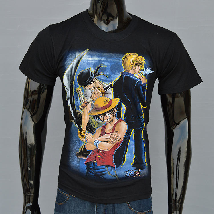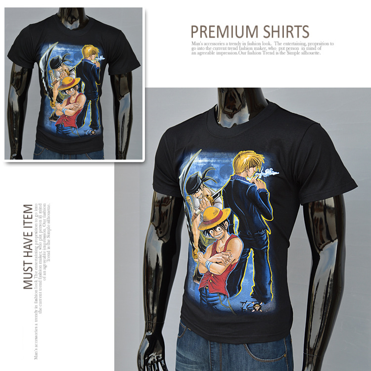 男士潮流日本動漫3D印花t恤海賊王3D效果圖案短袖t恤外貿潮款男裝