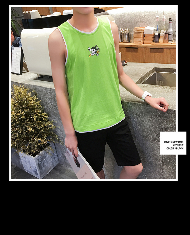 2016夏季7色海賊王假兩件背心情侶港風日系休