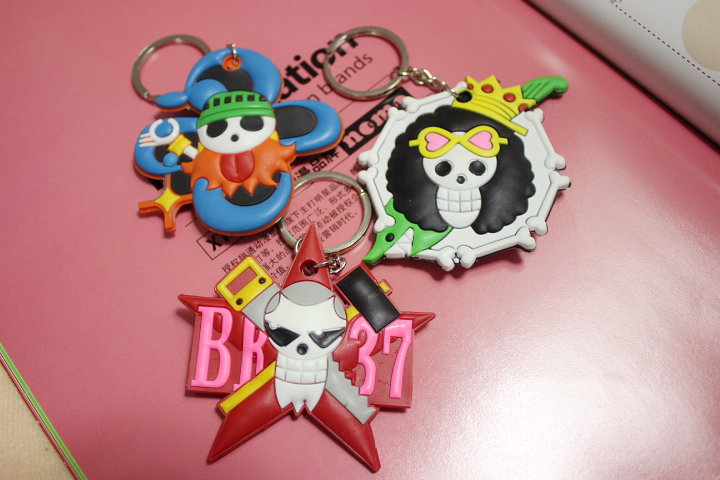 PVC塑膠材質,材質工藝難免偶有小印染小掉漆小劃痕~屬於正常。卡通小掛件鑰匙扣和小件