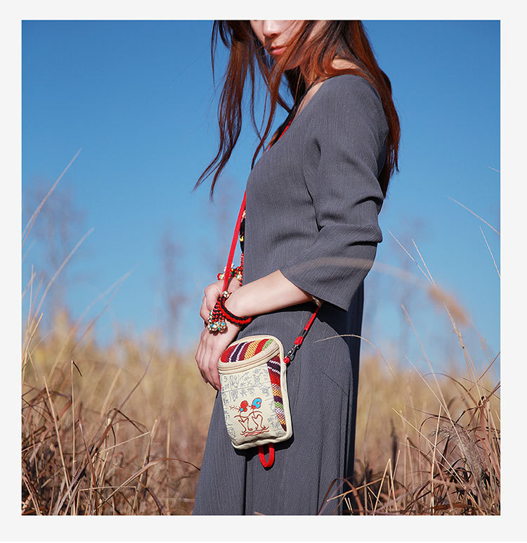 民族風包包單肩手機包帆佈休閒手拿包女士零錢包女包斜跨女式小包