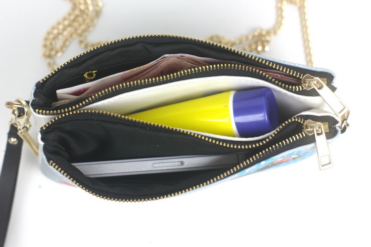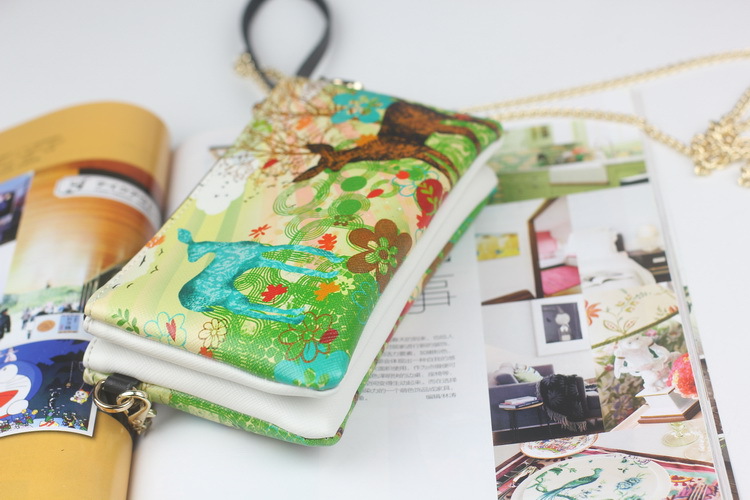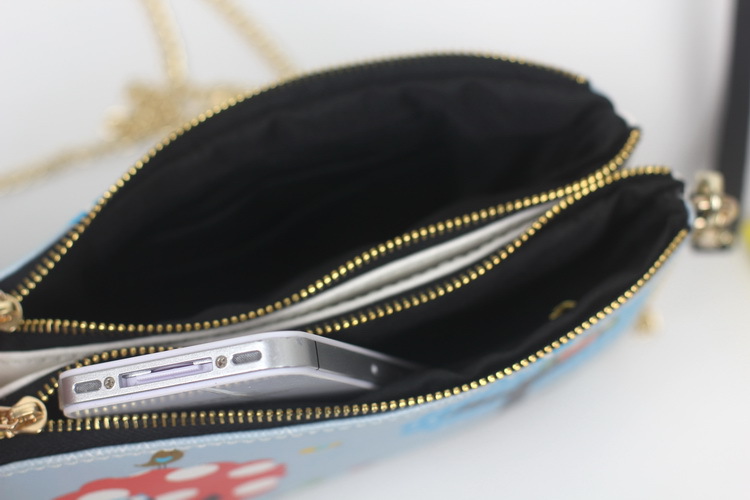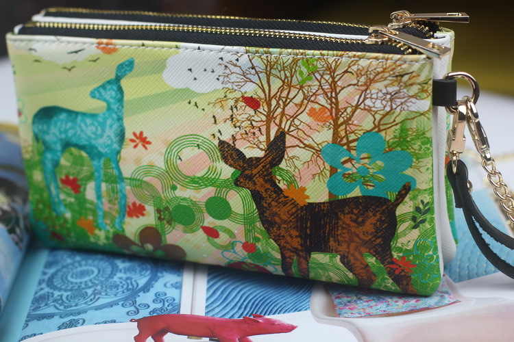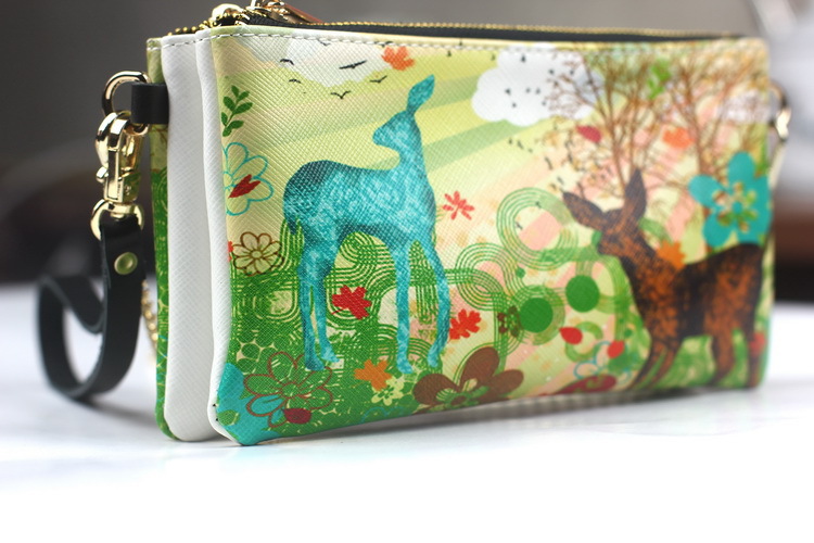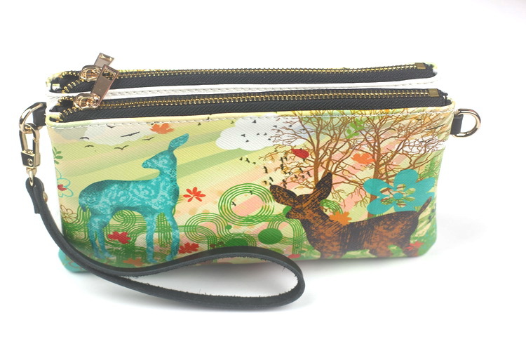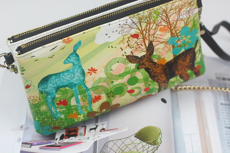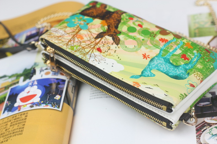 原創韓版風2013秋冬新款真皮印花斜款手拿包特色印花雙拉鏈包