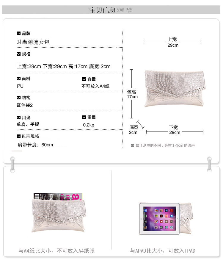 關於色差:本店全部產品圖為店主實拍圖,本店所有產品都是在相同的光線,相同的環境下拍攝的,由於每個買傢的顯示器或手機屏幕的亮度和色溫設置不同,實物和圖片不可避免的會有一點色差,望理解。店主是專業做真皮包的,非專業作圖的,美工方麵沒有什麼技術和經驗,見諒。