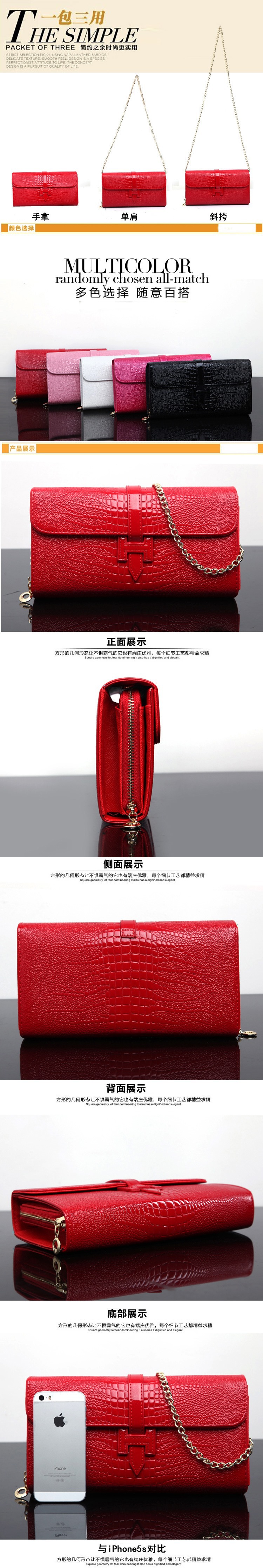 2015新款鱷魚紋手拿包女士鏈條包 歐美時尚潮流 單肩斜挎包h扣
