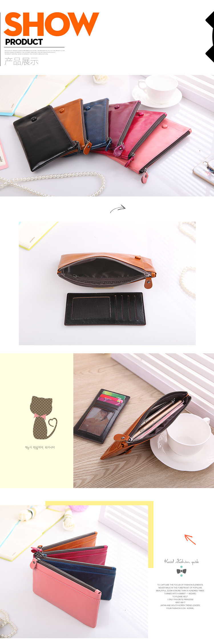 產品特點: | 1個拉鏈位,1個相片位,1個票據位,1個大鈔位,7個卡位, 多卡位,多功能針車工藝精美 時尚 |