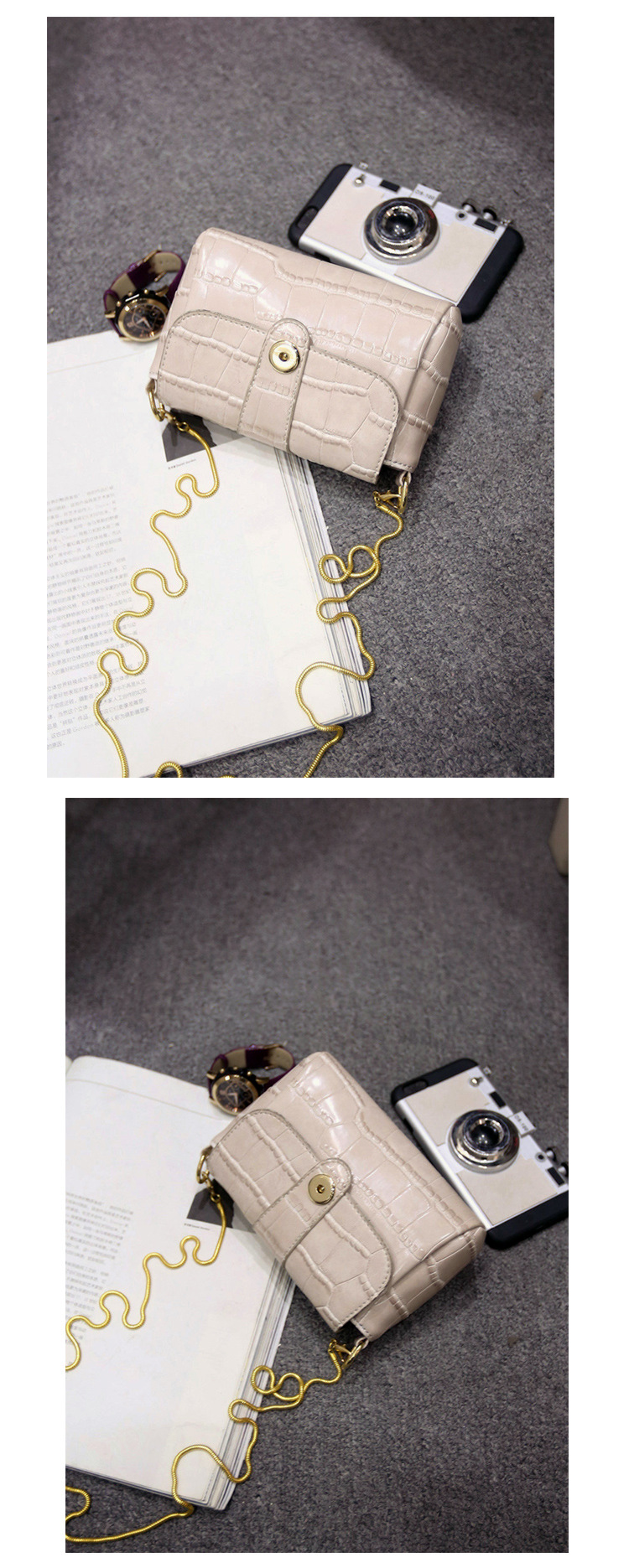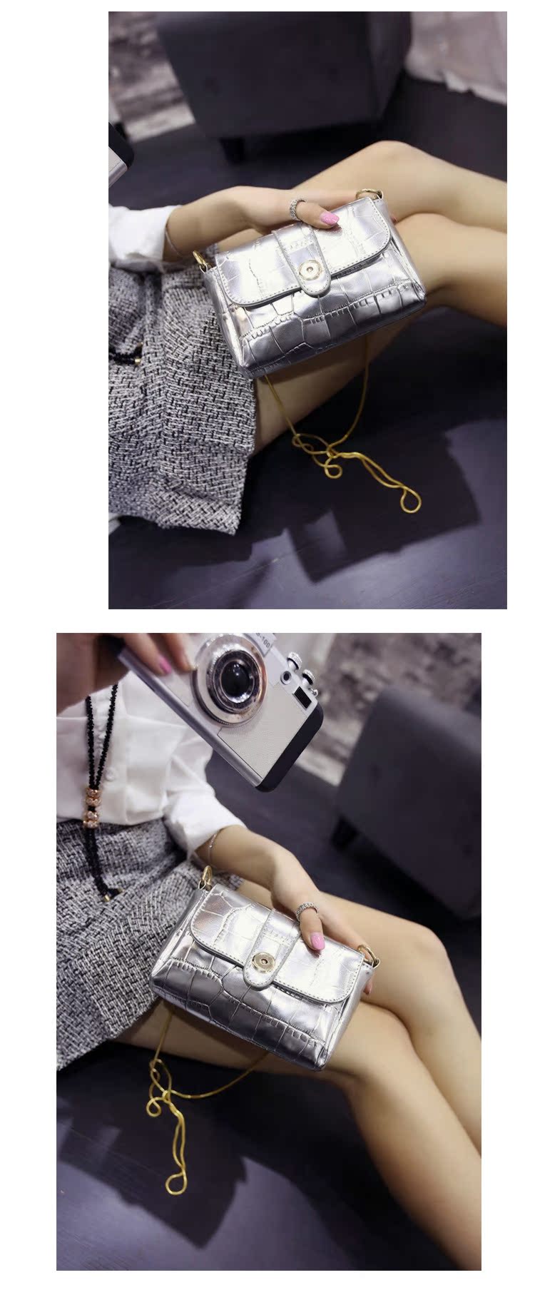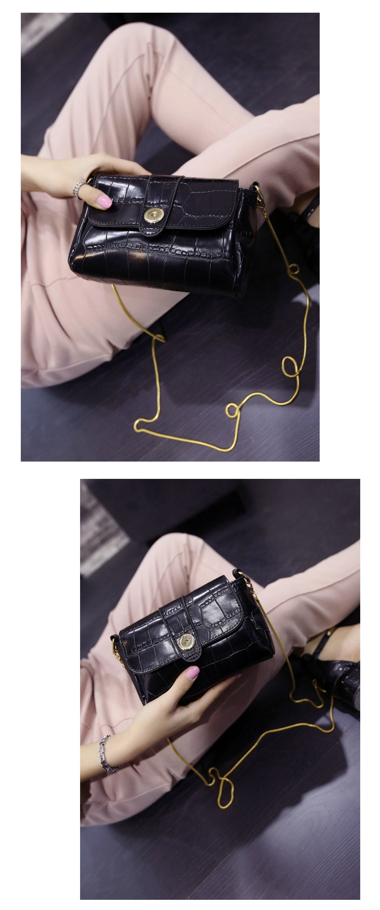 2016時尚鱷魚紋小包斜跨女包韓新款手拿包韓版單肩斜挎鏈條小