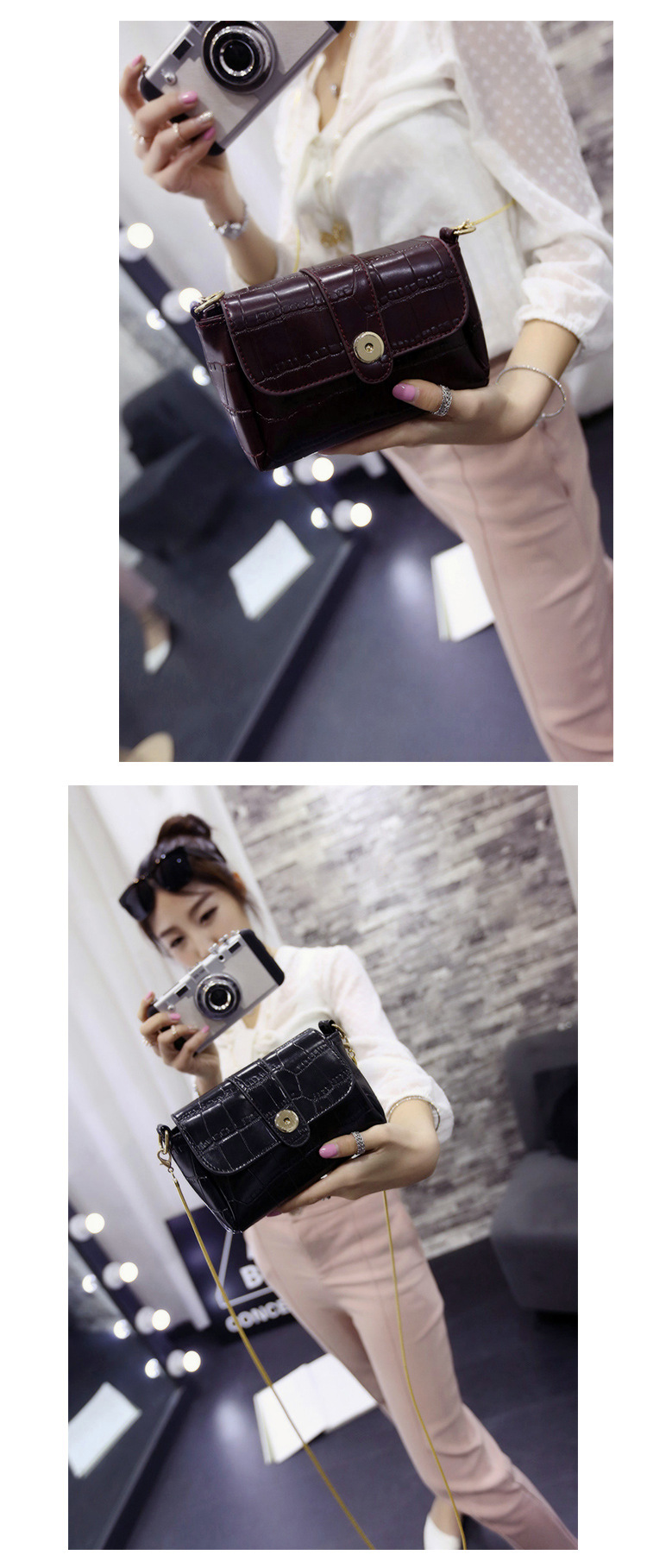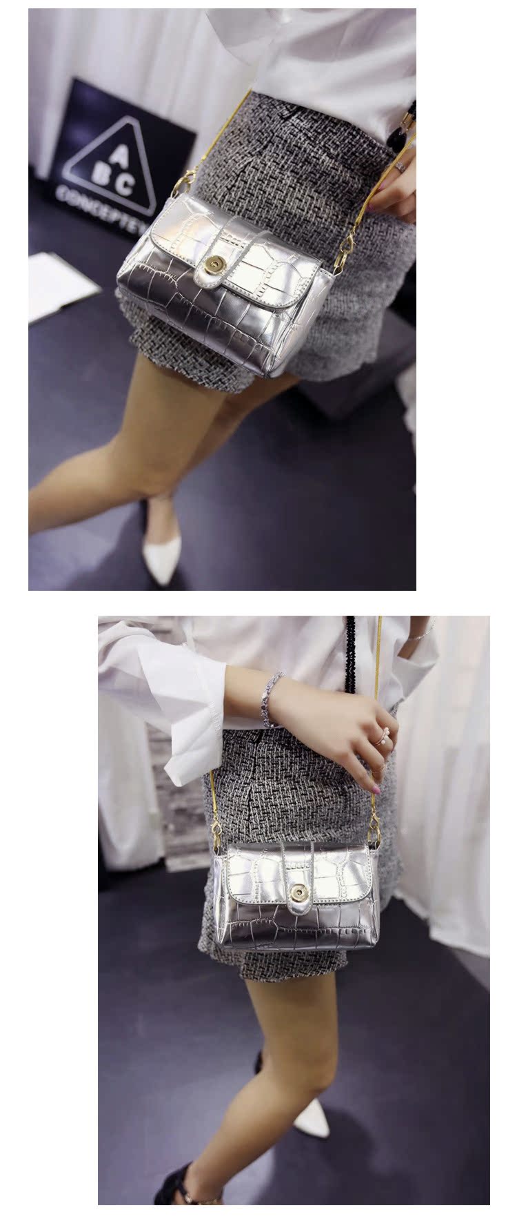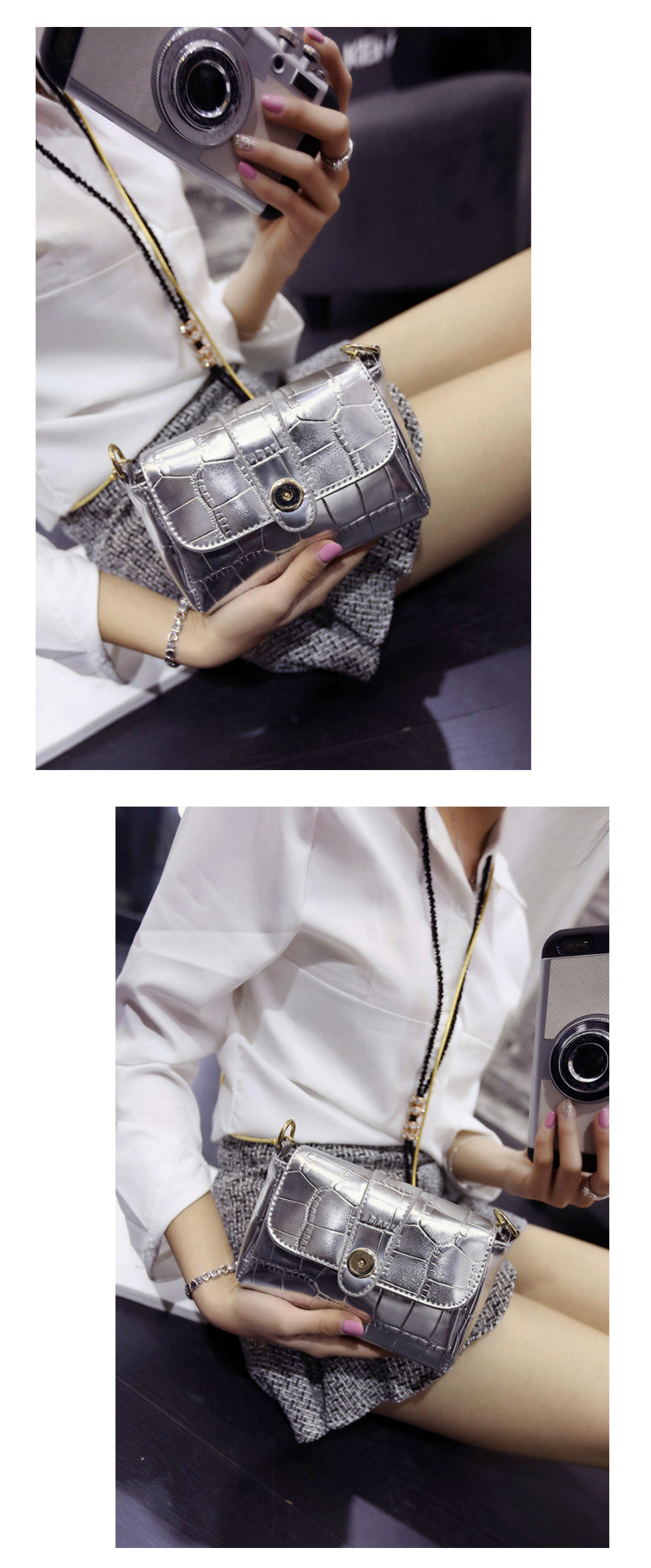 2016時尚鱷魚紋小包斜跨女包韓新款手拿包韓版單肩斜挎鏈條小