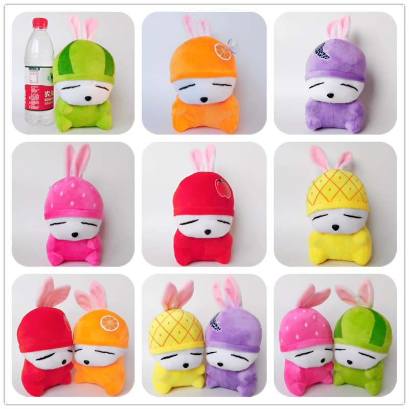 水果流氓兔公仔共6個顏色(蘋果,菠蘿,草莓,西瓜,橙子,葡萄),普通超柔短毛絨麵料,填充三維中空PP棉,重100克左右
