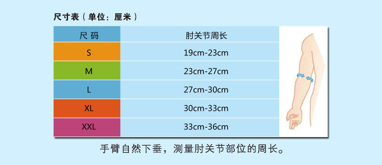 - 對肘關節部位肌肉組織的強大支撐作用,能有效的緩解酸脹和疼痛;